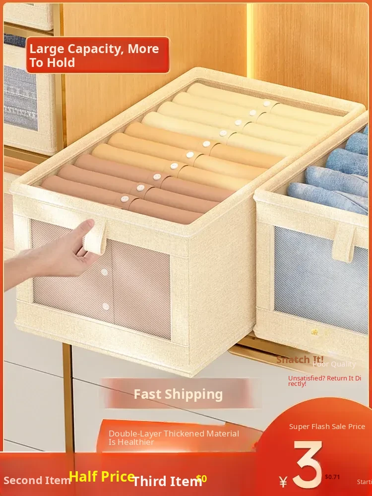 Tianshan Cotton and Linen Clothes Storage Box - Multi-Layer Organizer for Home, Perfect for Clothes and Pants, Foldable Storage Bin for Closet Organization