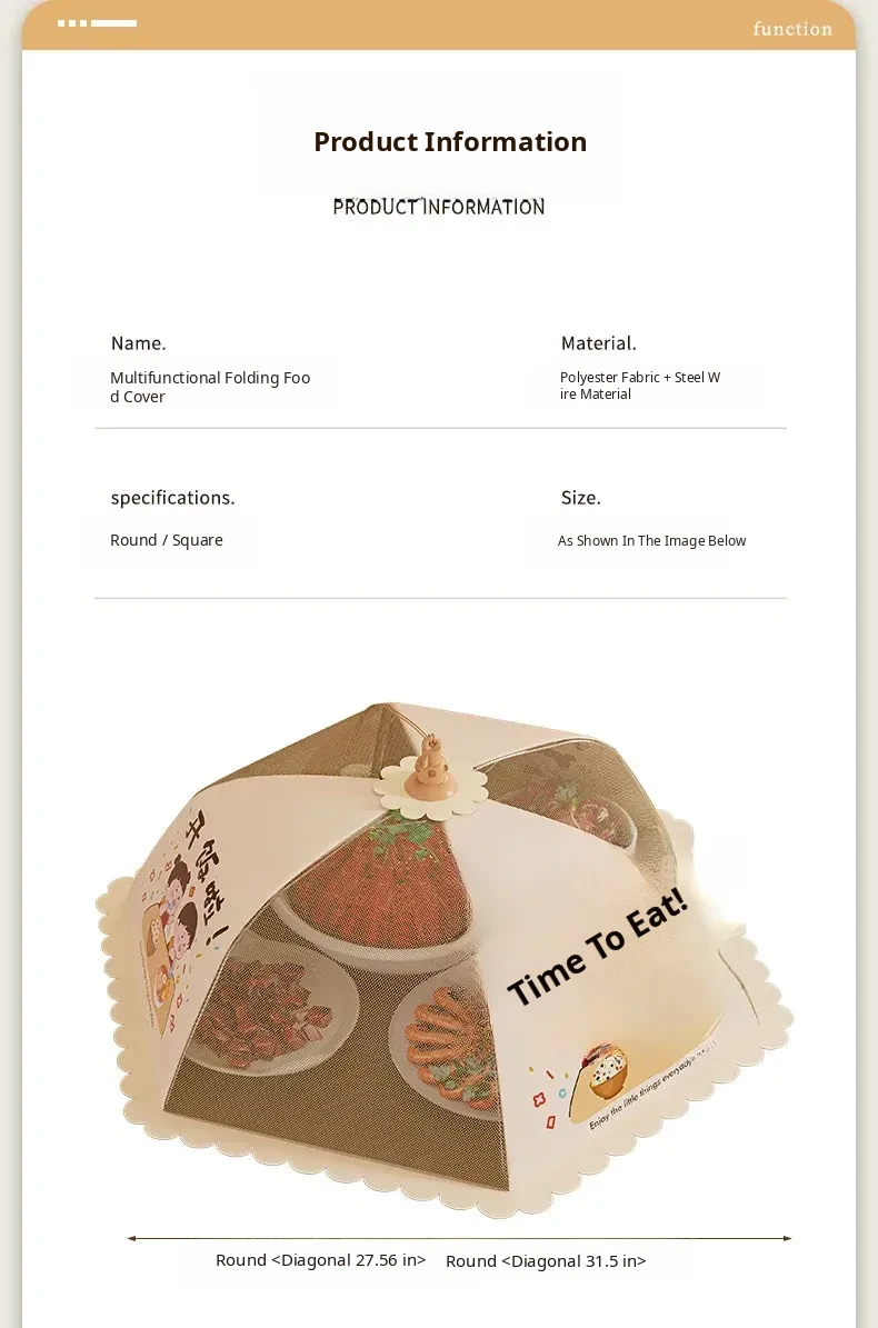 [Round 31.50in]✅Let's Eat! [Reinforced Frame / Premium Mesh / Foldable] - Covers 10-12 Dishes