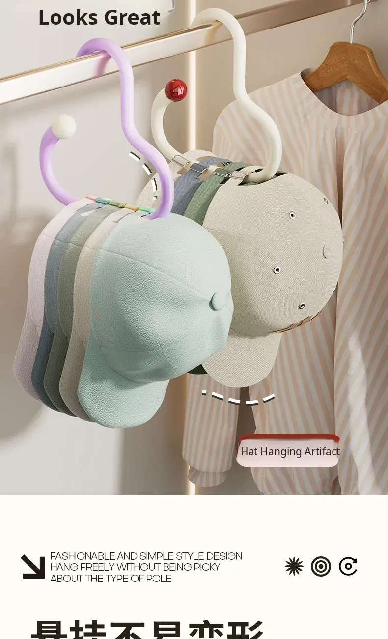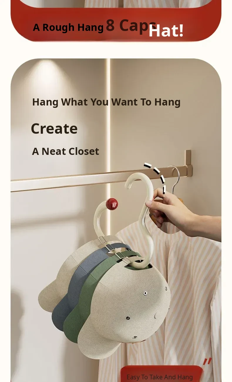 Hat Organizer - Space-Saving, Non-Deforming Multi-Functional Hook & Hanger for Home and Dorm Use, Perfect Display Rack for Baseball Caps and Snapbacks