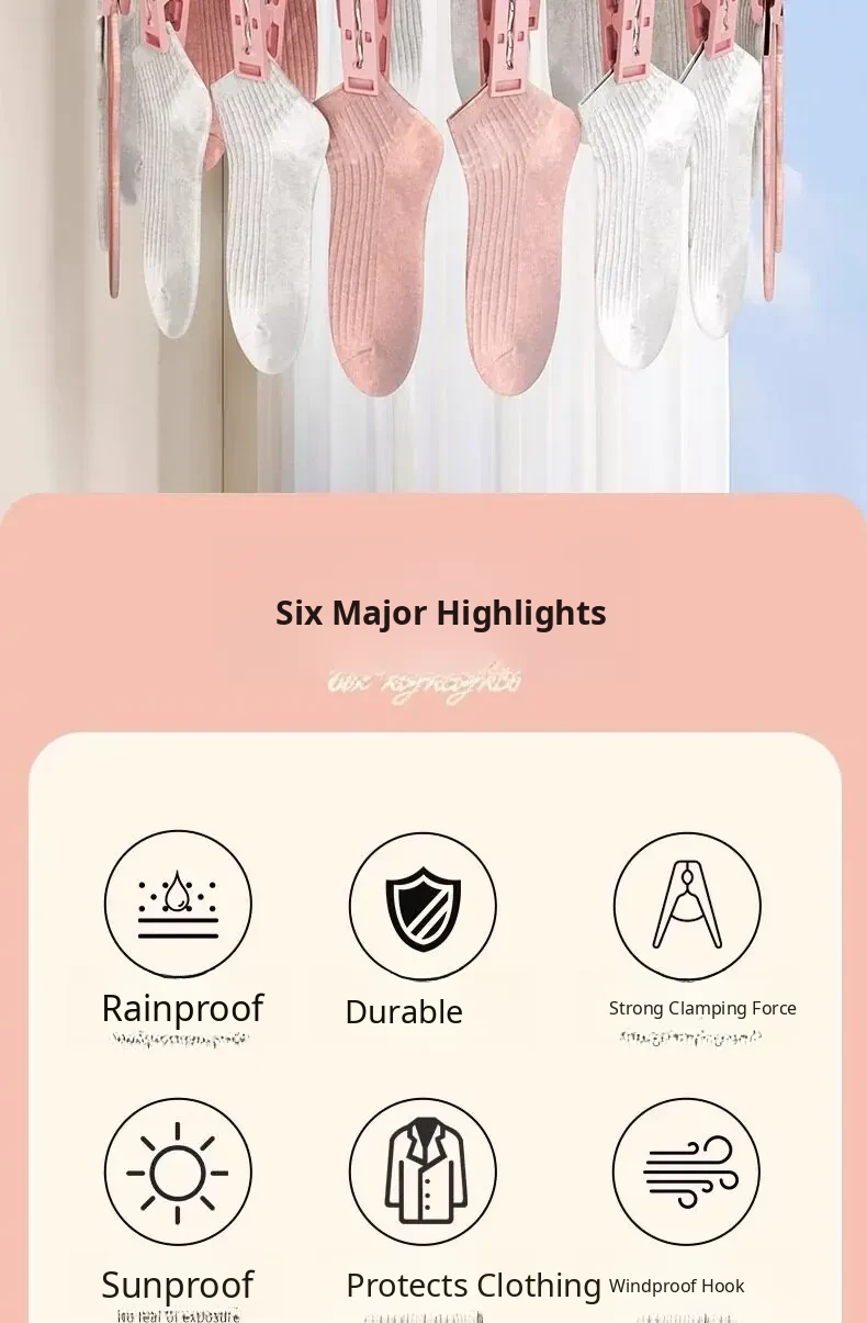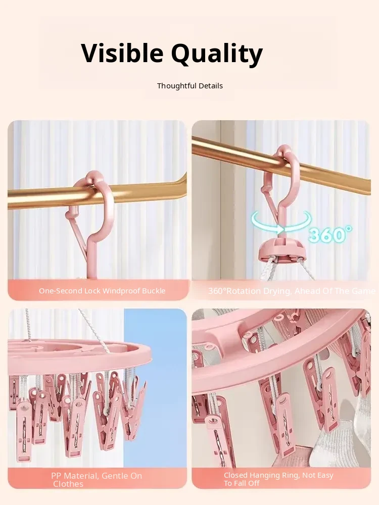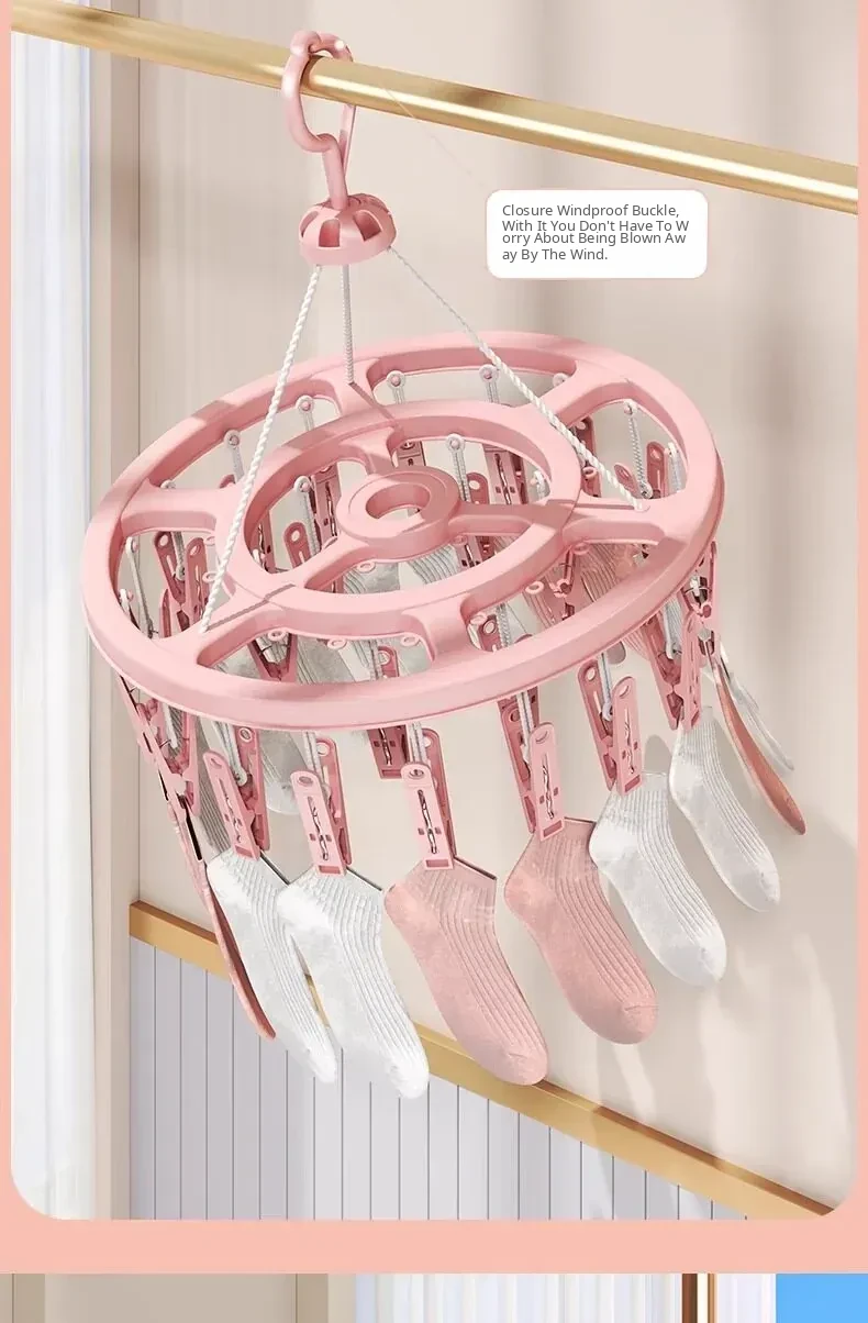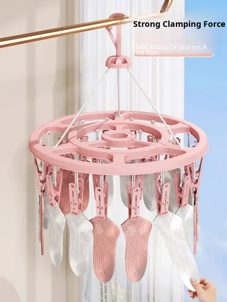 Multi-Functional Windproof Sock and Underwear Drying Rack for Balcony - Home Clothesline with Multiple Clips, Perfect Storage Solution for Indoor and Outdoor Use