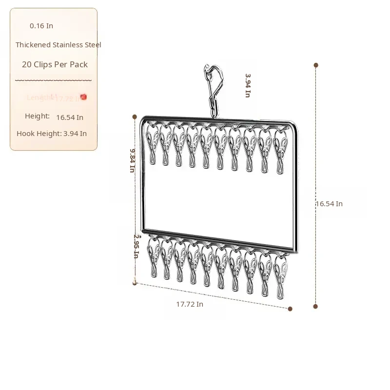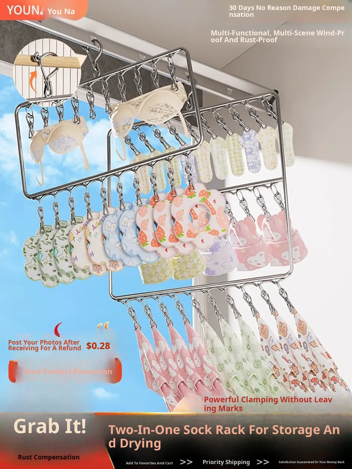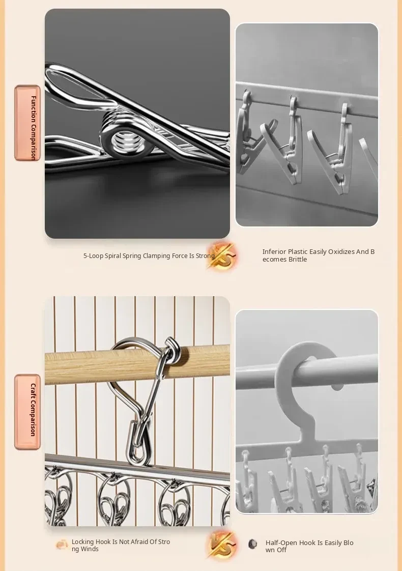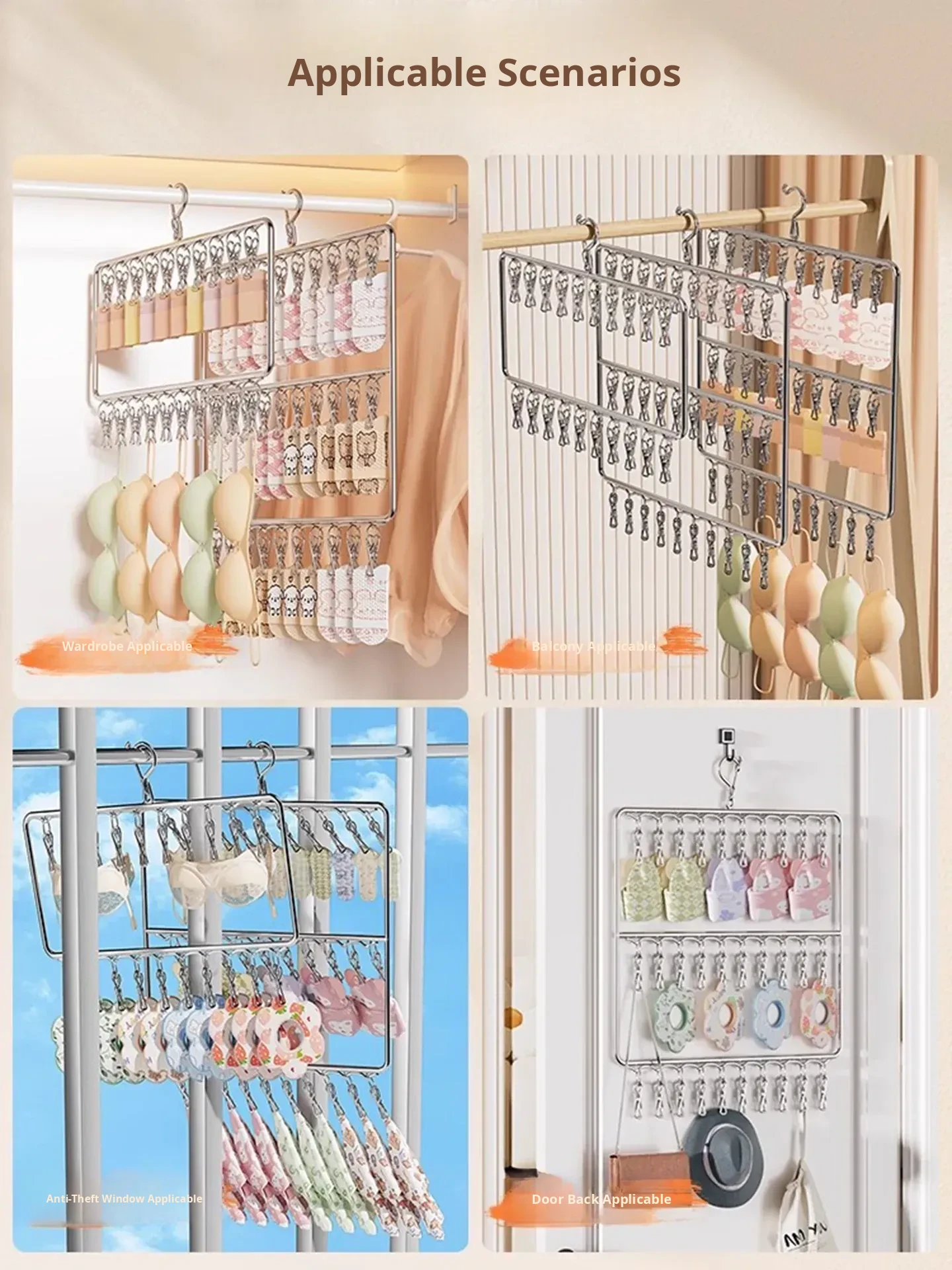 Stainless Steel Sock Drying Rack with Multiple Clips - Windproof Indoor Clothes Hanger for Underwear and Socks, Perfect for Balconies and Home Use