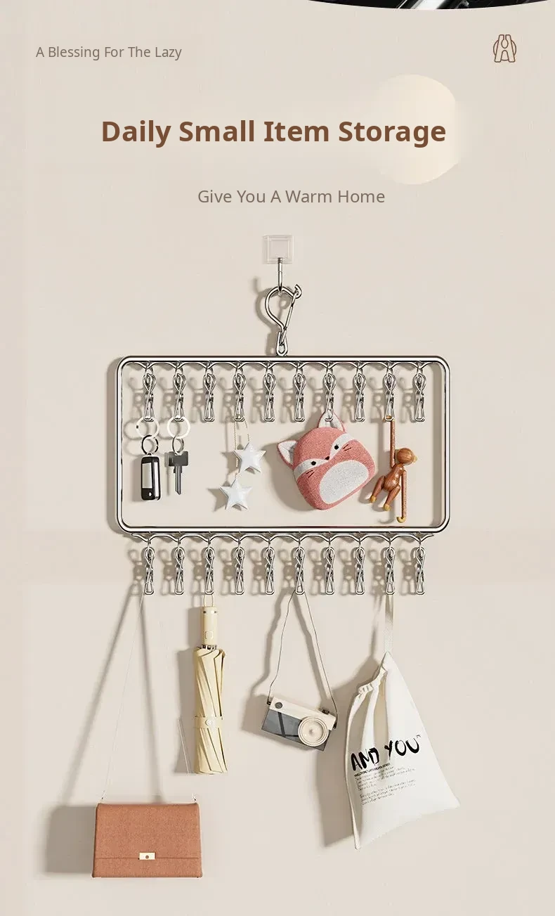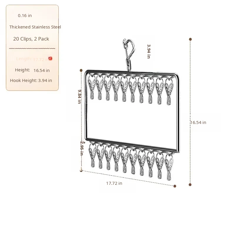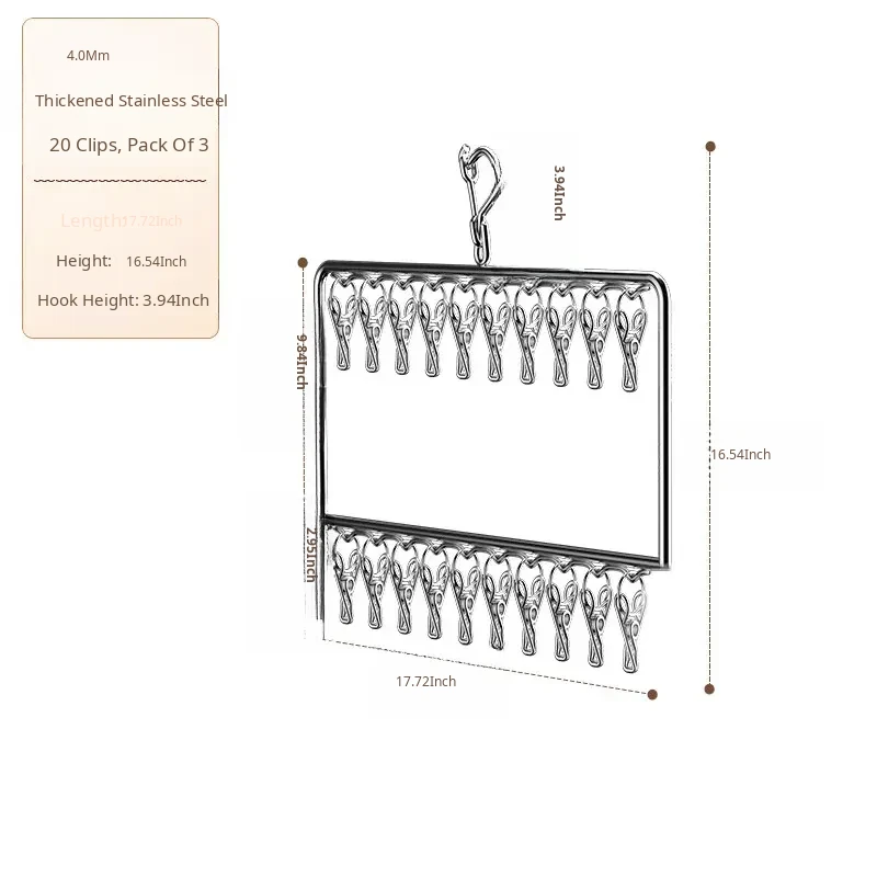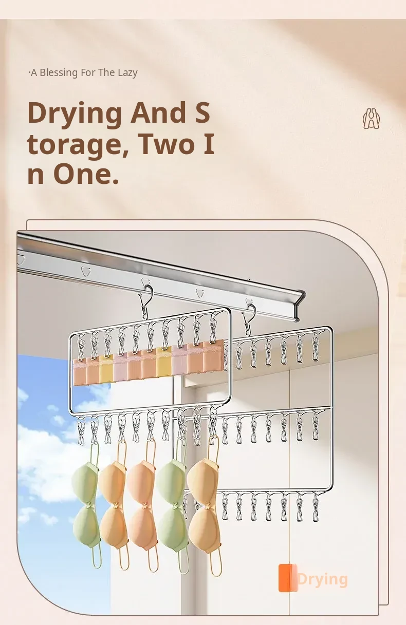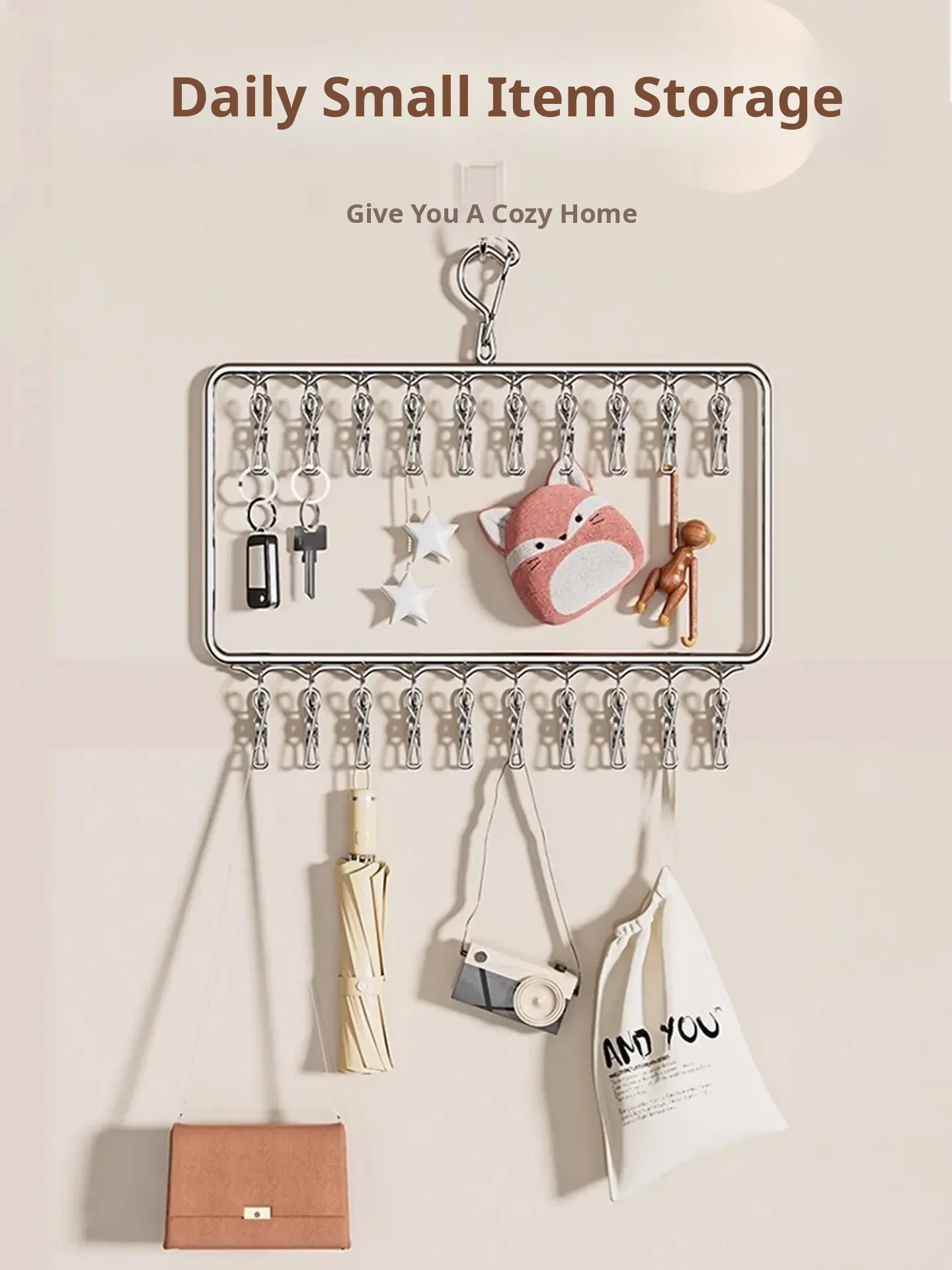 Stainless Steel Sock Drying Rack with Multiple Clips - Windproof Indoor Clothes Hanger for Underwear and Socks, Perfect for Balconies and Home Use