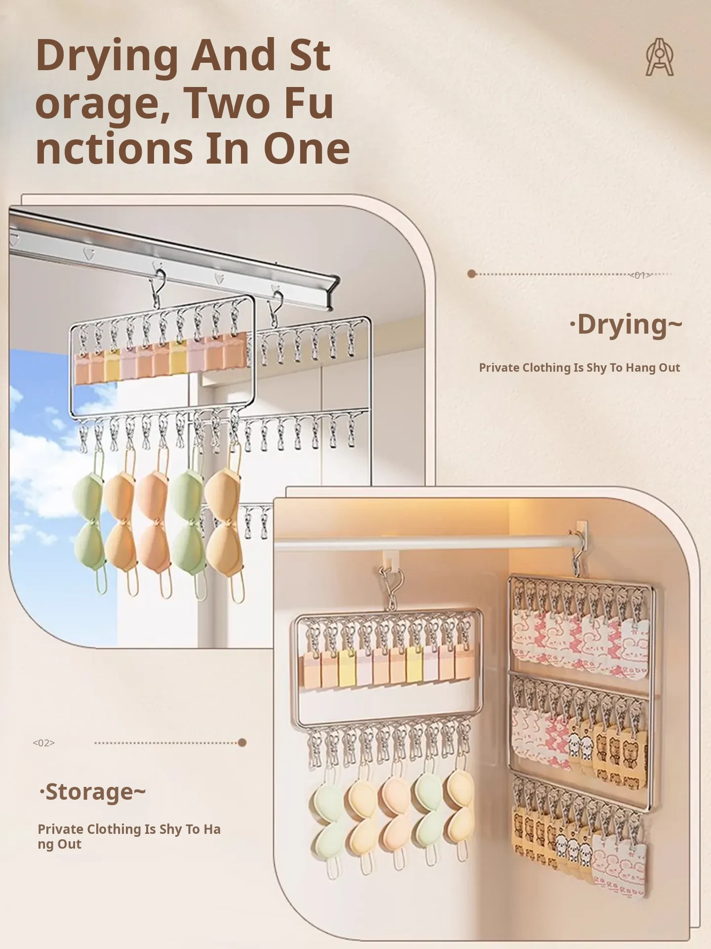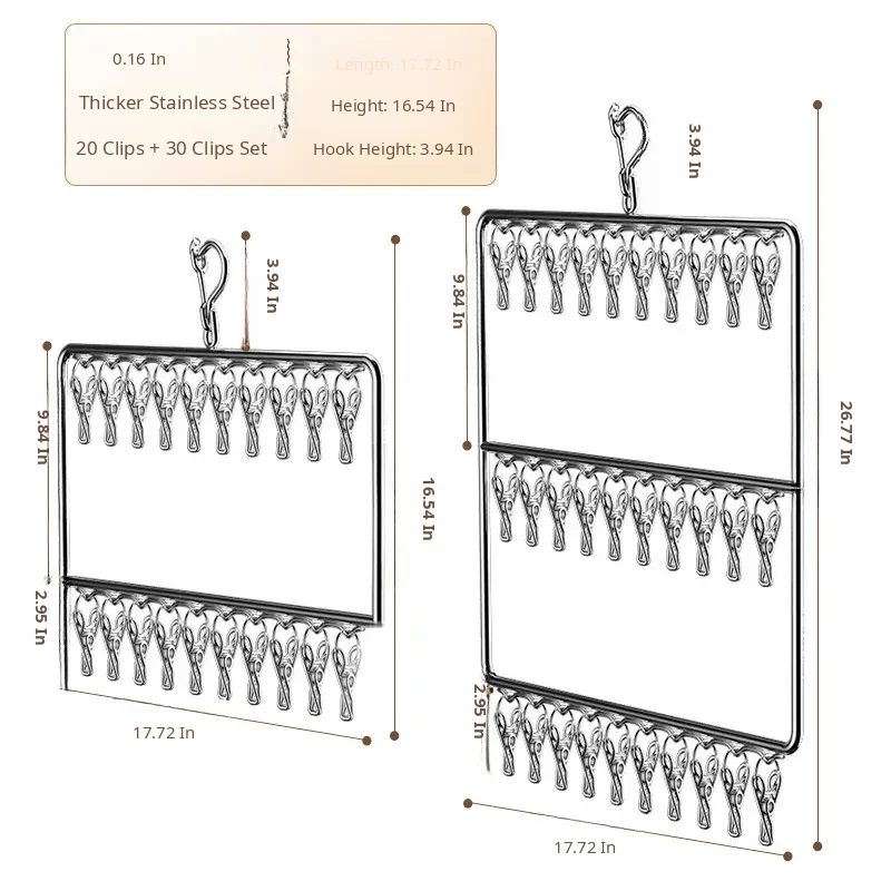 【Buy One Get One Free】2-Tier 20-Clip Hanger - Heavy Duty Grip⭐No Odor] Windproof and Rustproof/Space Saving
