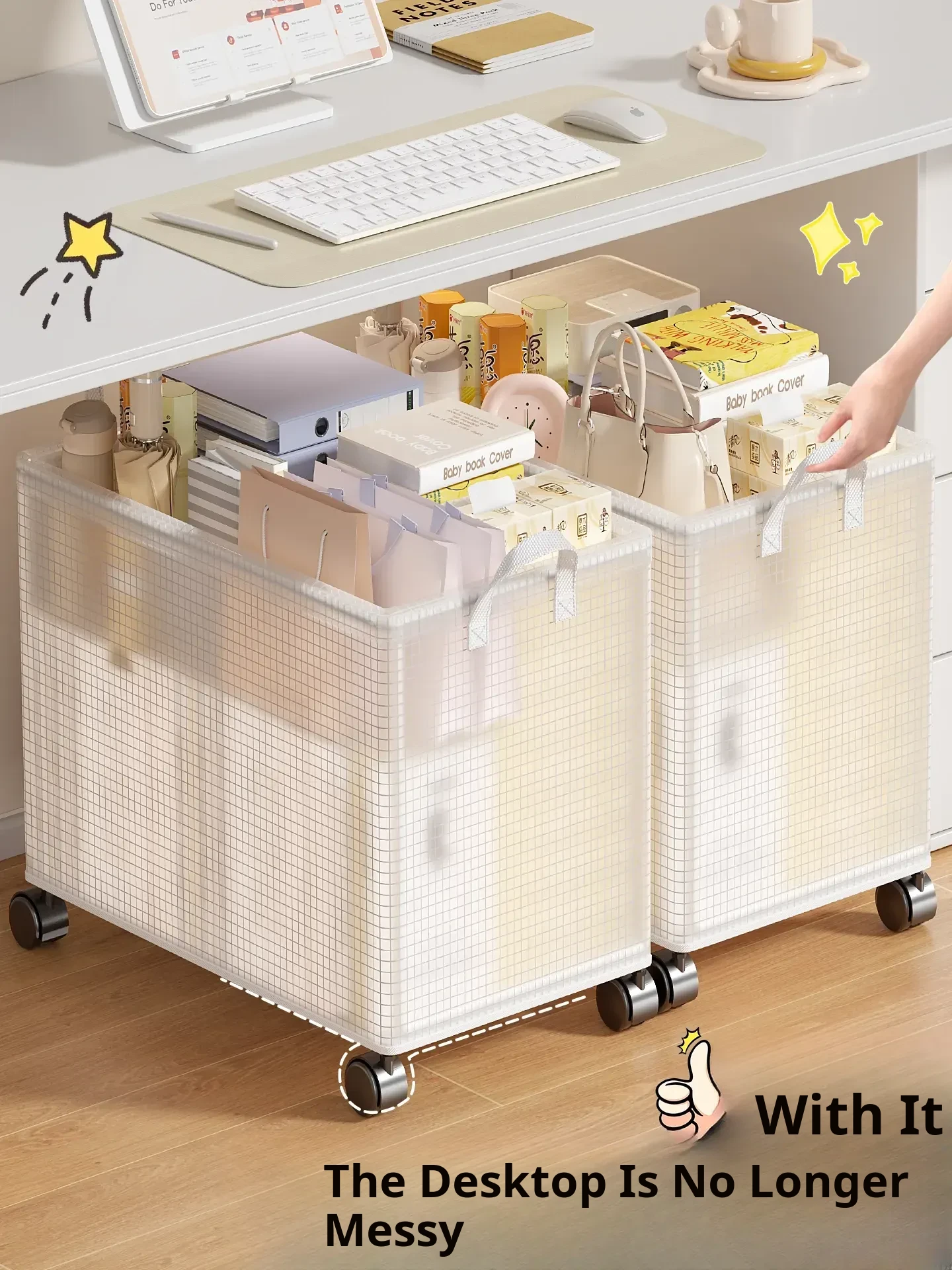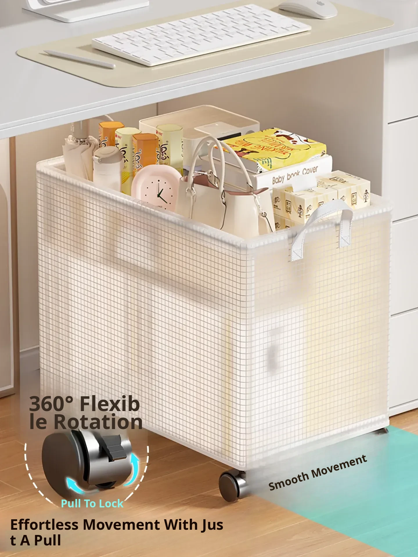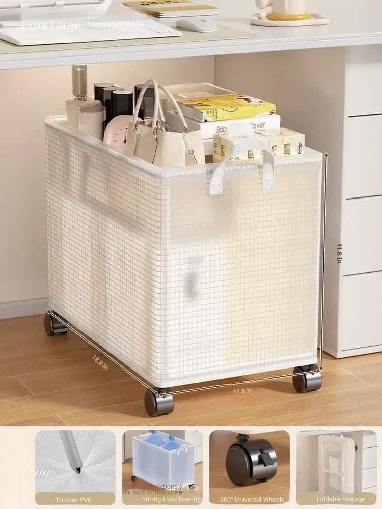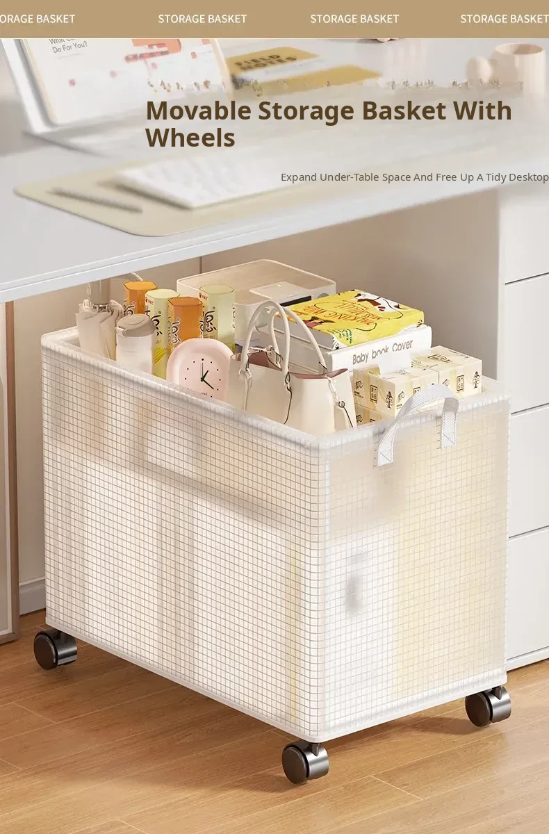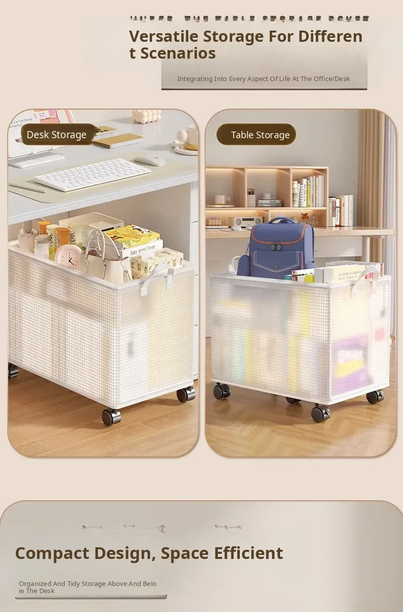 Under-Desk Storage Basket with Wheels – Portable Trolley Organizer for Bags, Perfect for Office Spaces and Workstations, Keep Your Area Neat and Tidy!