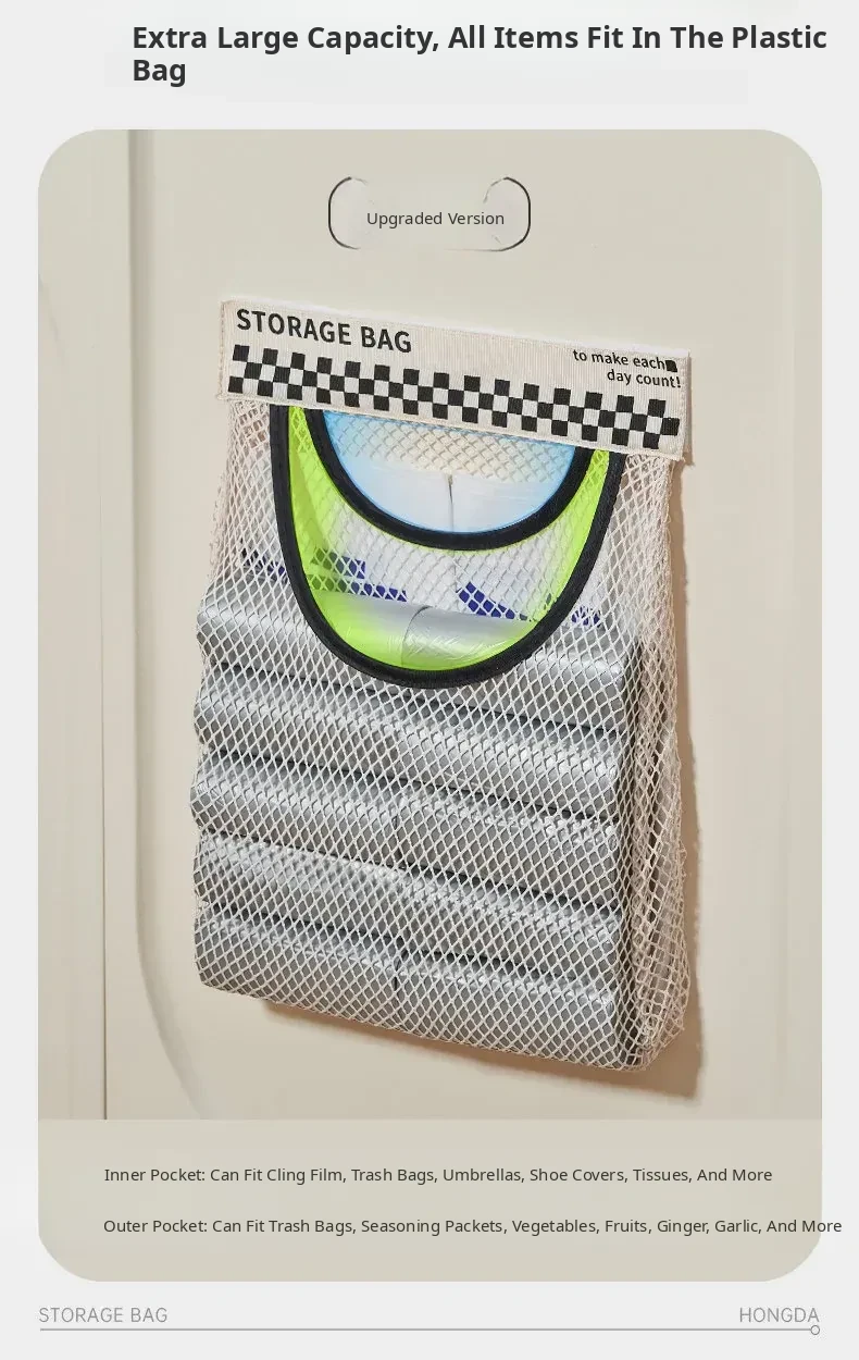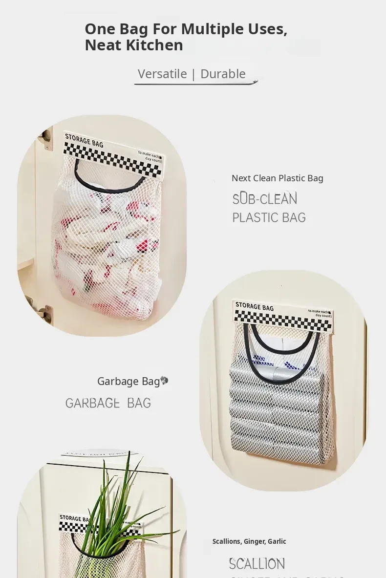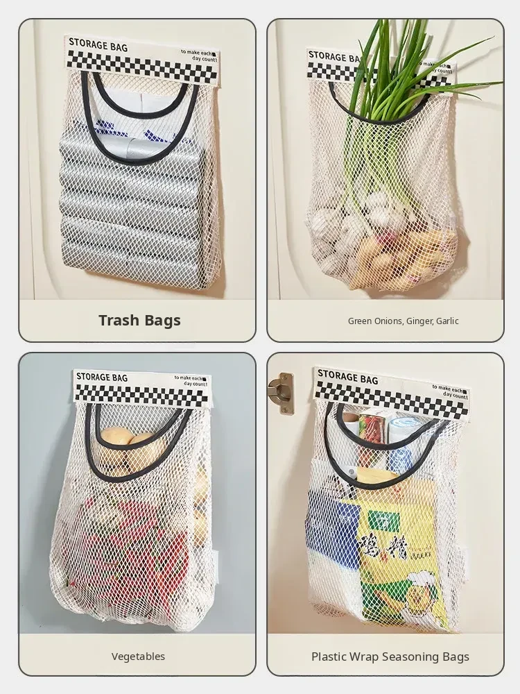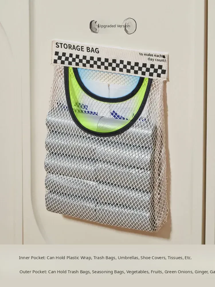 Wall-Mounted Kitchen Trash Bag Holder - No Drill Required! Convenient Storage Solution for Bathroom and Cabinet Doors, Breathable Mesh Pocket Organizer