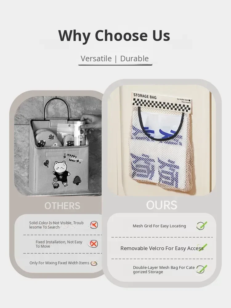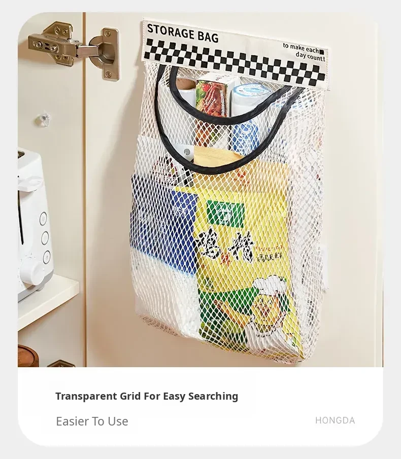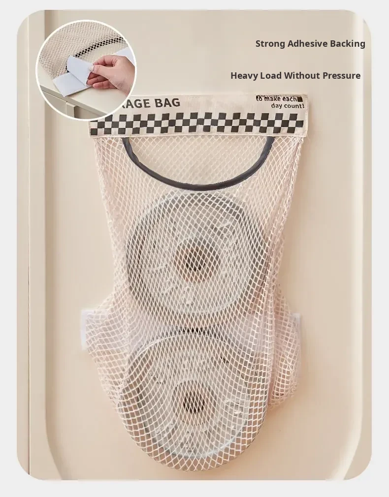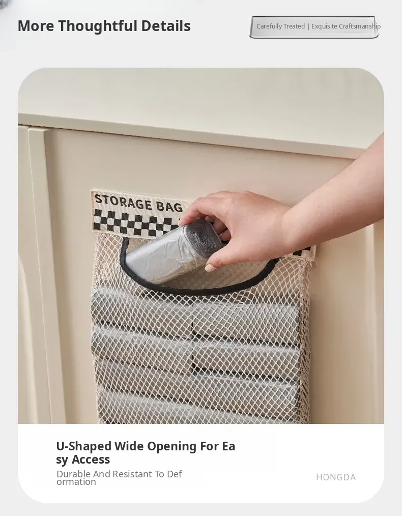 Wall-Mounted Kitchen Trash Bag Holder - No Drill Required! Convenient Storage Solution for Bathroom and Cabinet Doors, Breathable Mesh Pocket Organizer