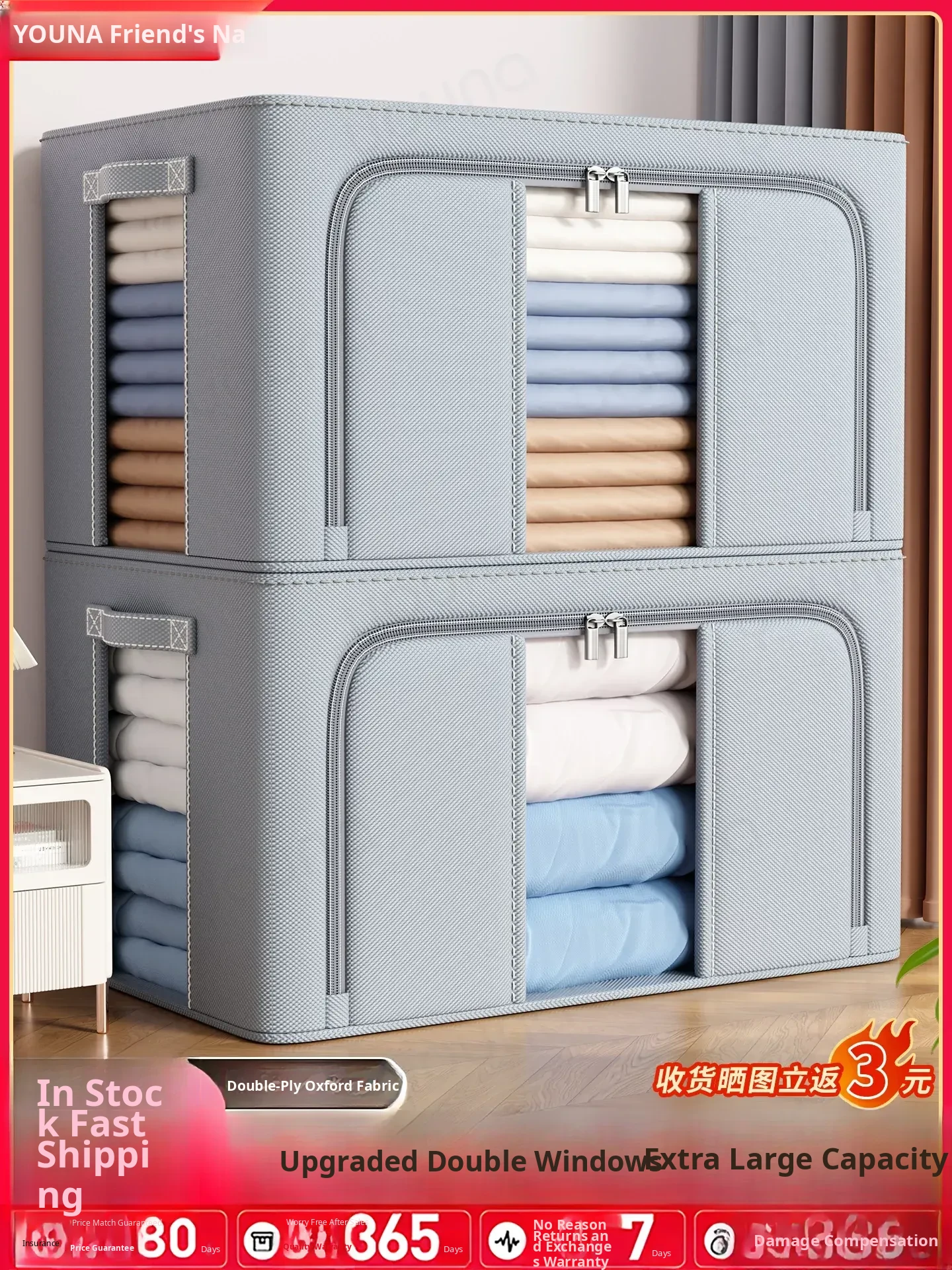 Foldable Lockable Storage Box - Extra Large Capacity Organizer for Clothes, Quilts, and Toys - Moisture-Proof Home Storage Solution