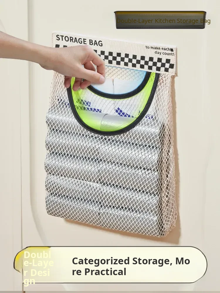 Wall-Mounted Kitchen Trash Bag Holder - No Drill Required! Convenient Storage Solution for Bathroom and Cabinet Doors, Breathable Mesh Pocket Organizer