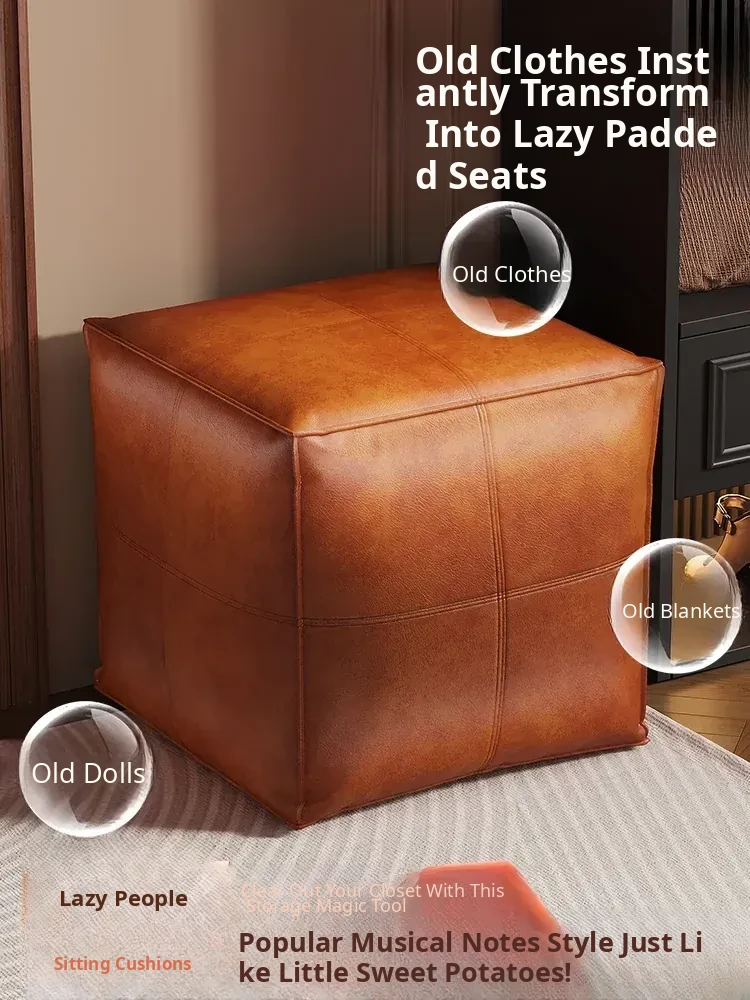 Stylish 2-in-1 Storage Ottoman - Premium Leather Pouf for Living Room & Bedroom, Perfect for Clothing Storage and Easy Shoe Change, Ideal for Lazy Days on the Sofa