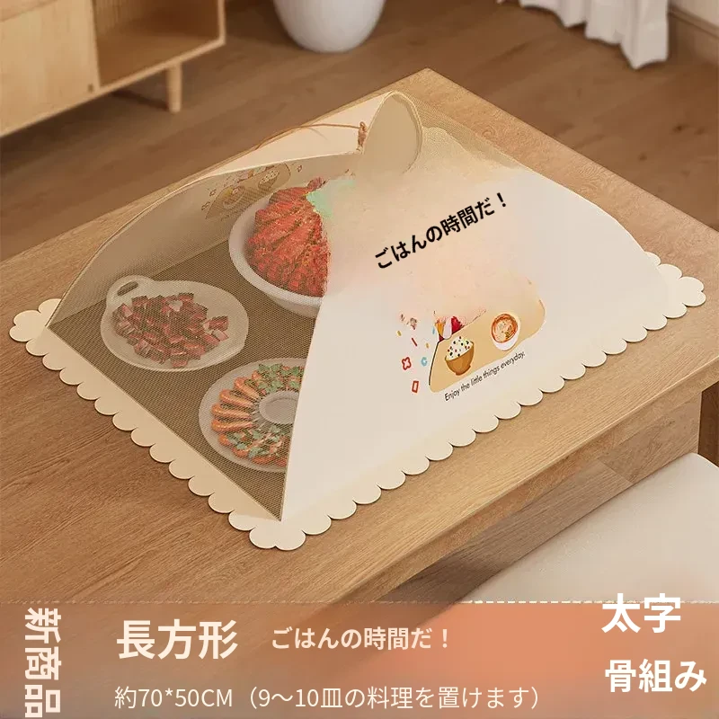 【長方形70*50cm】✅食事開始【強化フレーム/高品質メッシュ/折りたたみ可能】10-12皿の料理をカバーできます