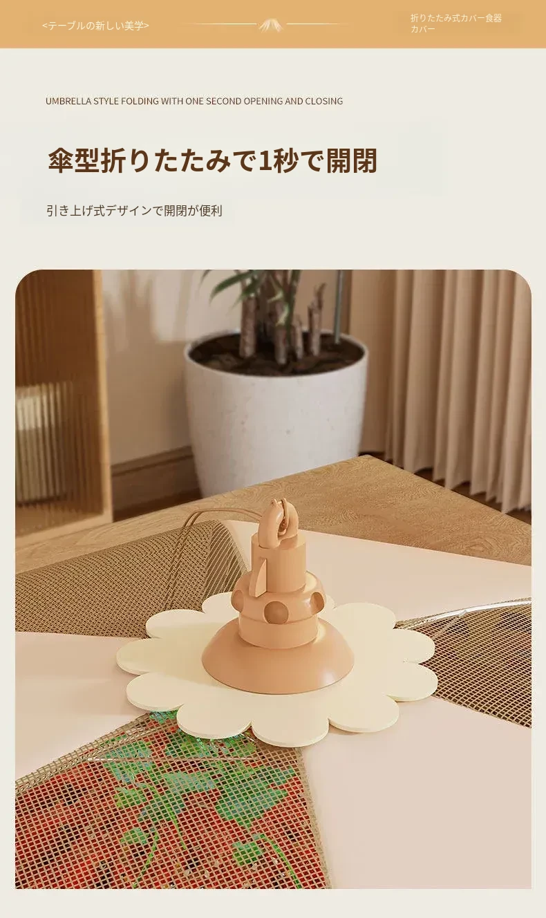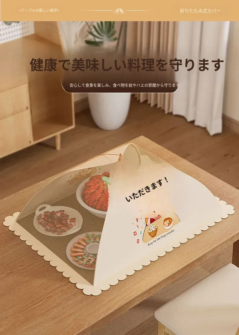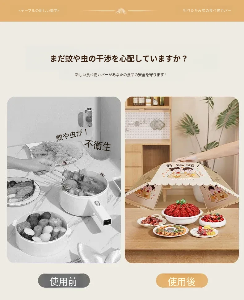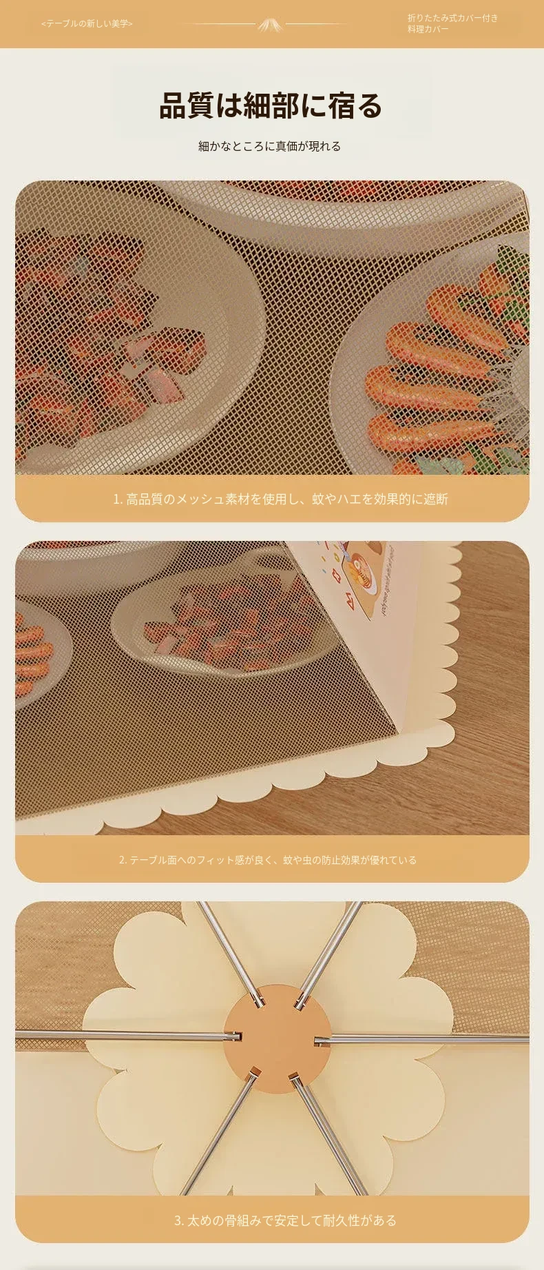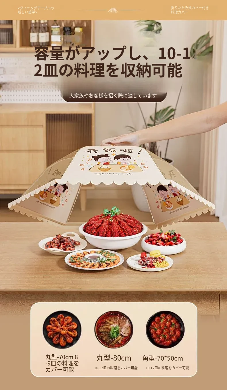 2025年新作 折りたたみ式万能菜カバー!蚊やハエから守る、残り物も安心!四季に使える便利なキッチンアイテム!