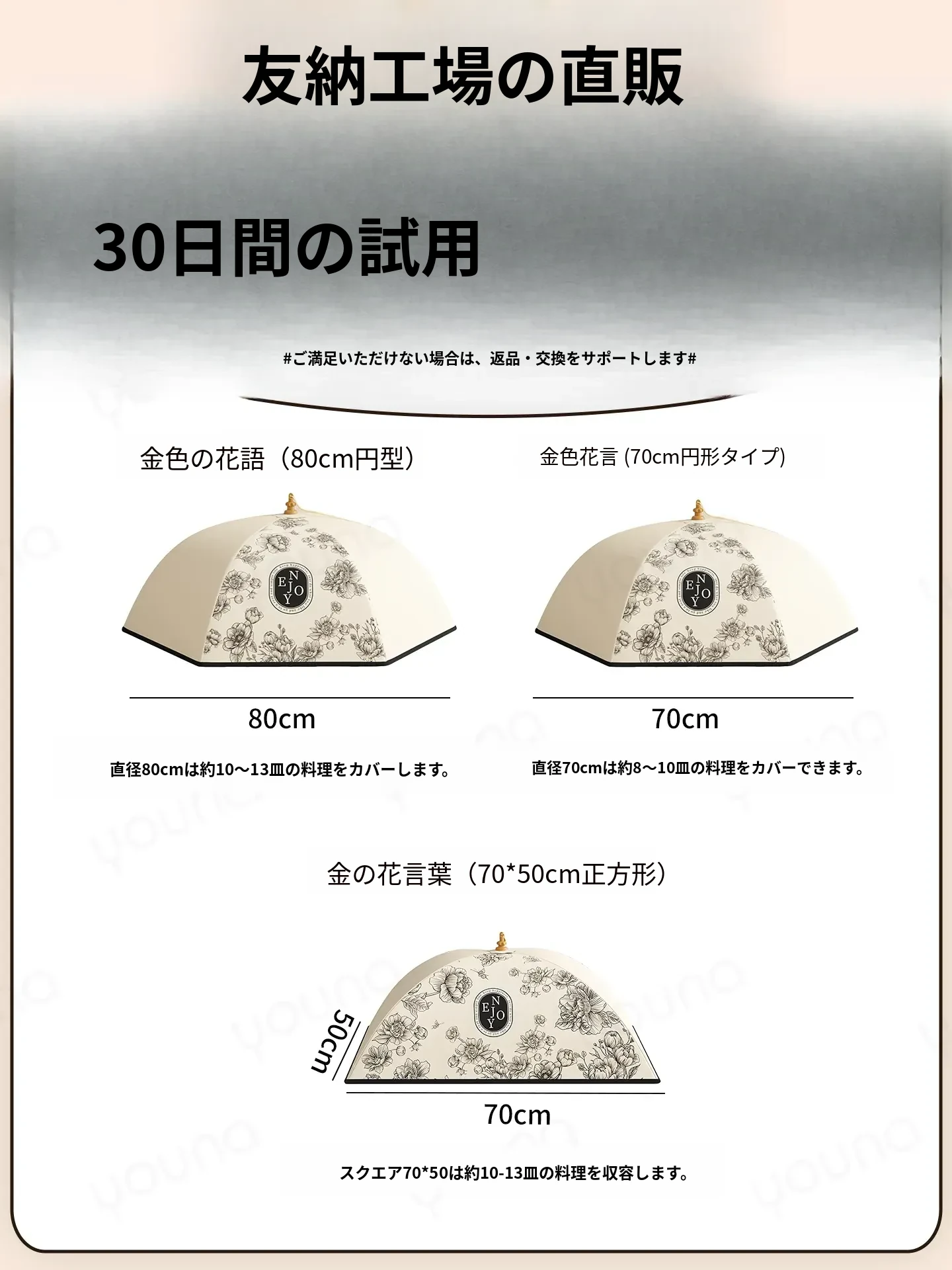 70cm直径丸型❤️厚手保温タイプ❤️金色の花言葉❤️(約8-10皿の料理が置けます)