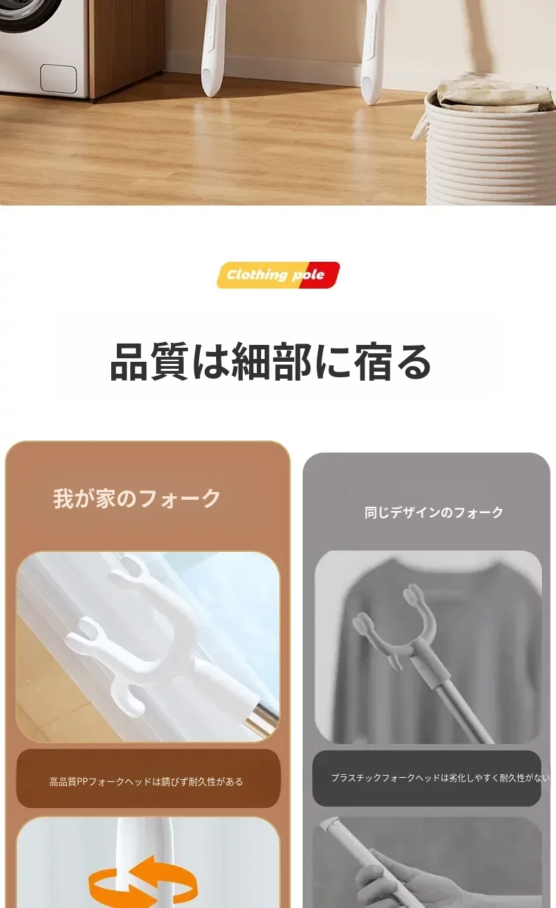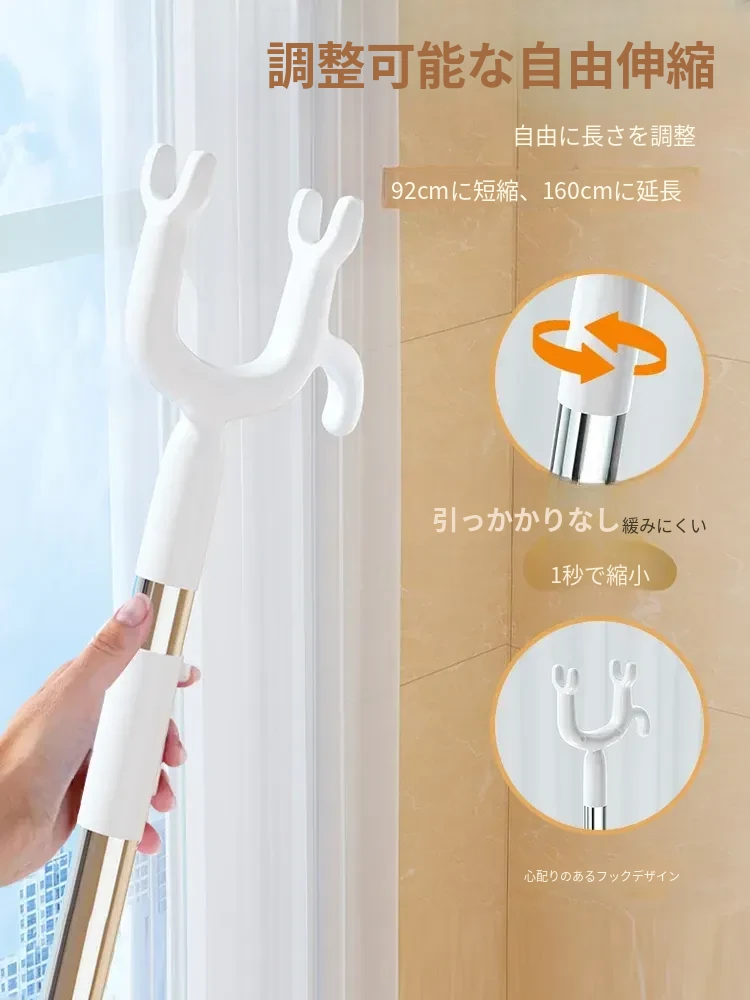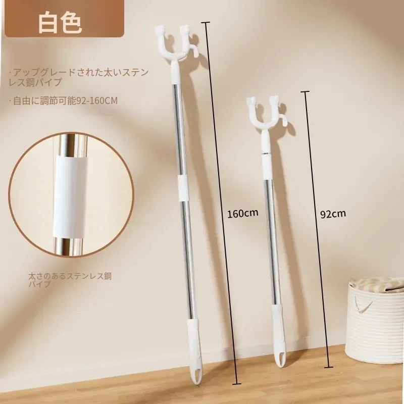 ロングタイプ⭐雲白⭐【滑り止めハンドル|防湿防錆|自由に伸縮調整可能な長さ160cm】