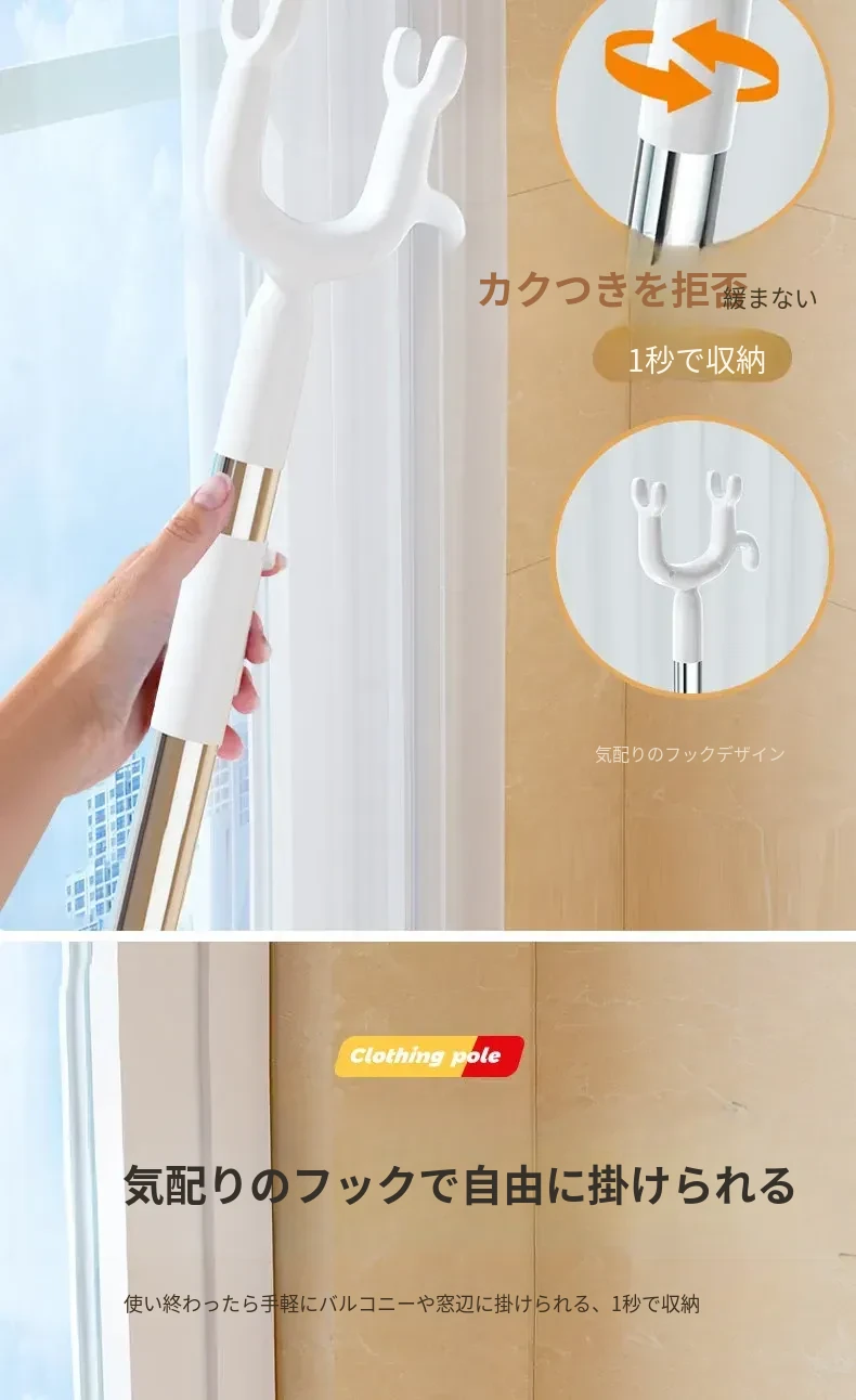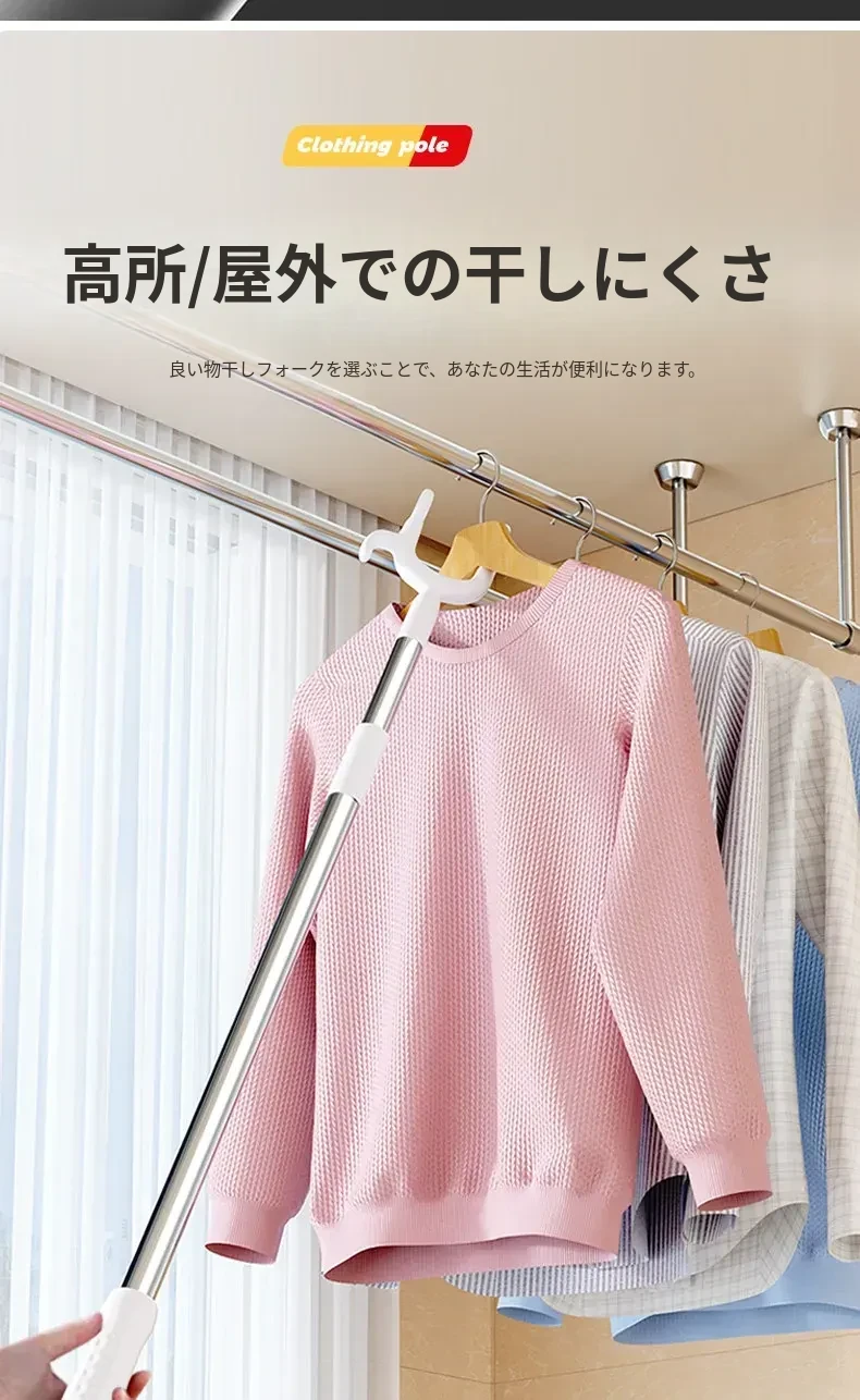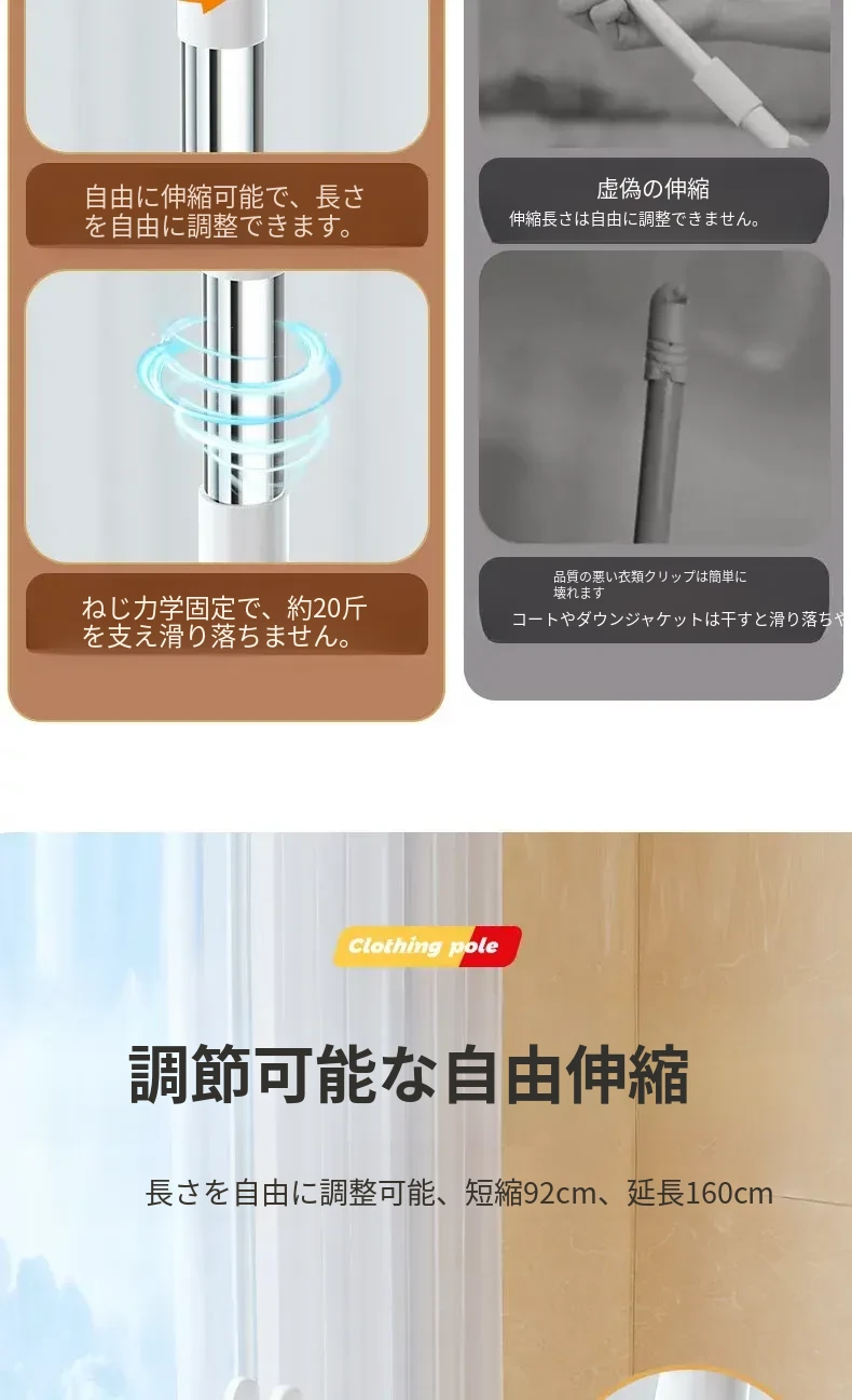 伸縮式衣類干し棒 - 家庭用・バルコニーに最適なステンレス製の長さ調整可能な衣類ハンガー!衣服をしっかり支え、スペースを有効活用するアイデア商品です!
