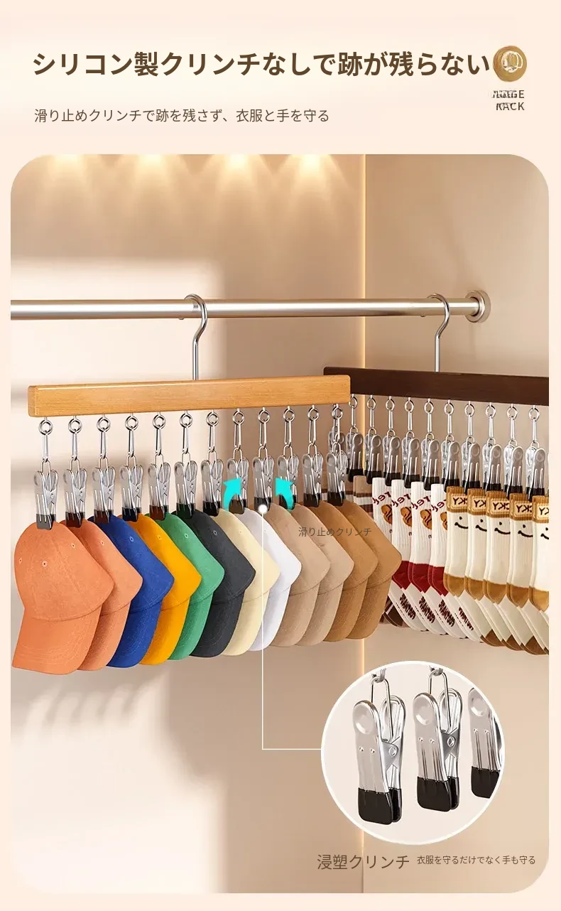 帽子収納マジックフック!多機能・家庭用・学生寮向けの帽子整理ラック。複数のクリップ付きで、野球帽もスッキリ収納!お部屋をおしゃれに整理整頓!