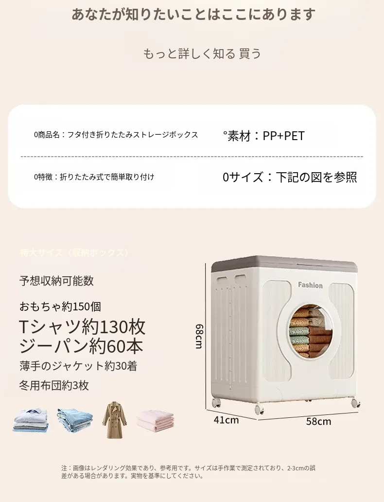 大容量・折りたたみ式衣類収納ボックス - 蓋付きで、衣類やおもちゃをスッキリ整理!家中どこでも活躍する便利なストレージボックス!