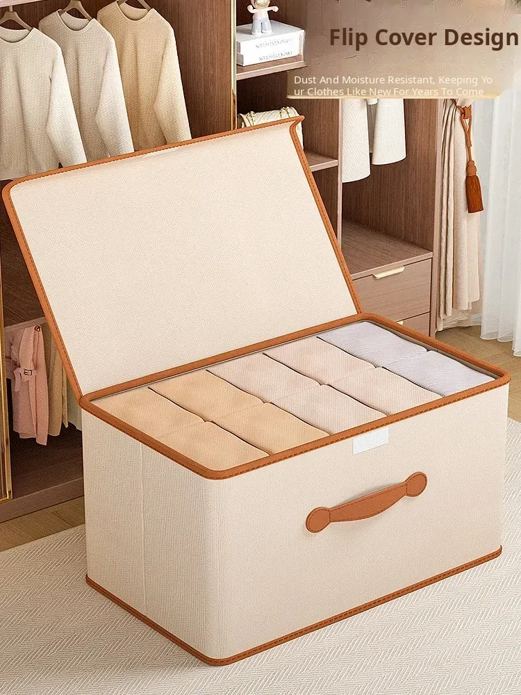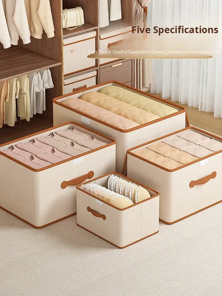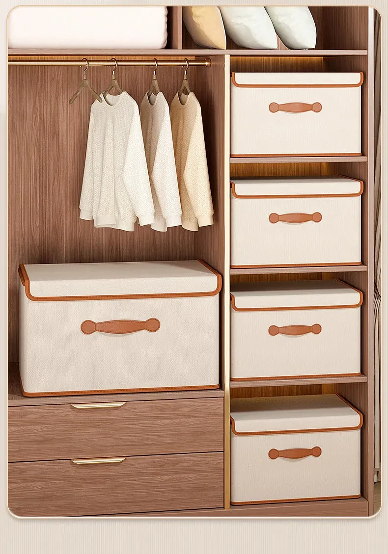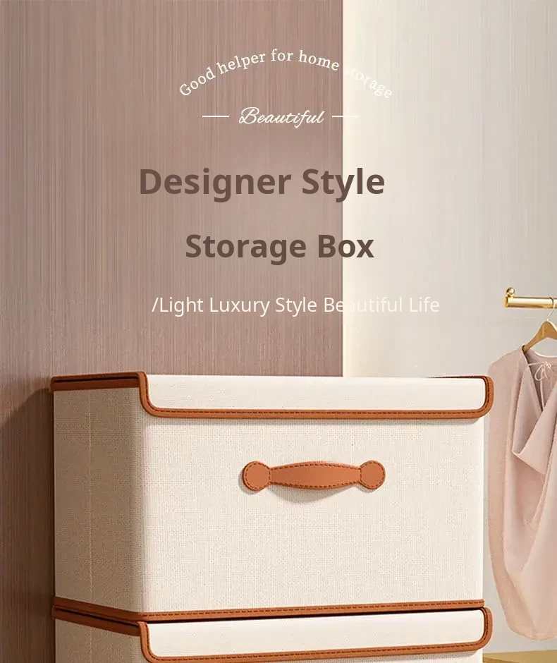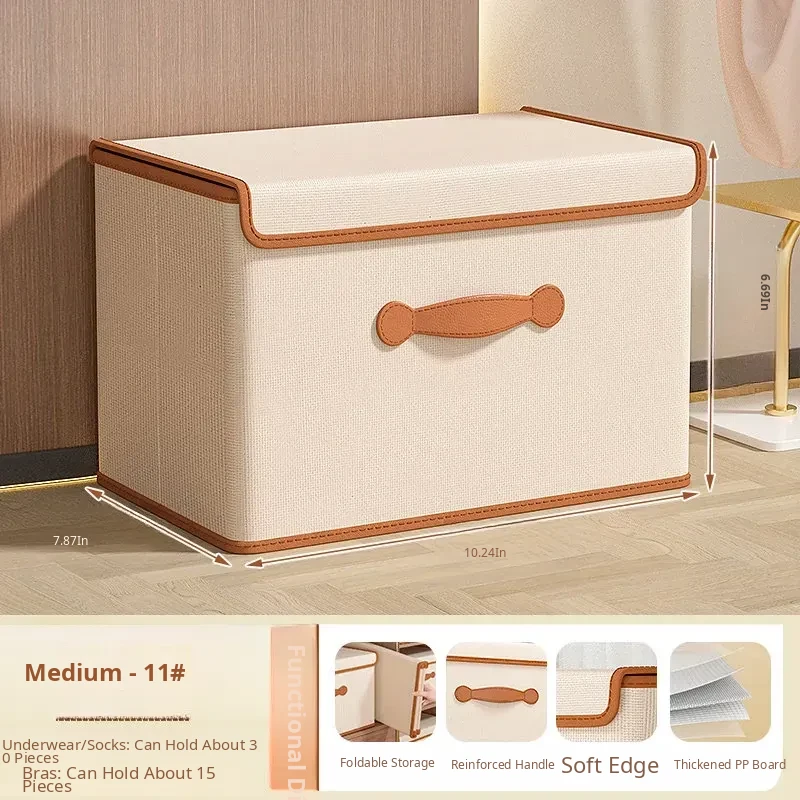 Pu Leather + Cationic Light Beige⭐Medium Size [Can Hold 30 Pairs of Underwear and Socks]