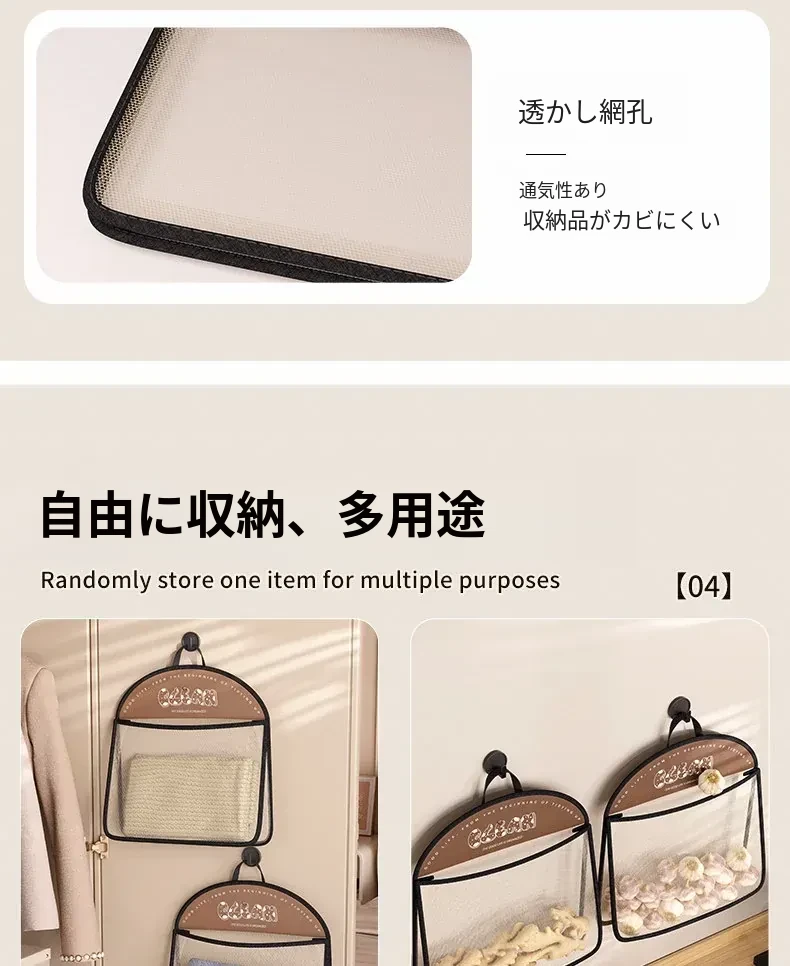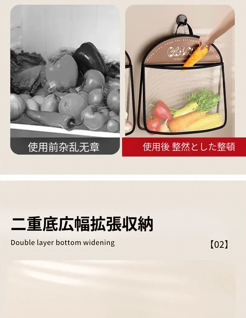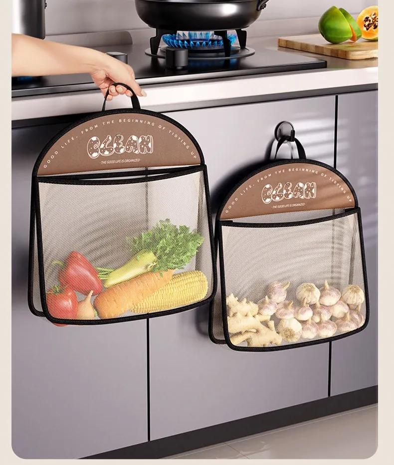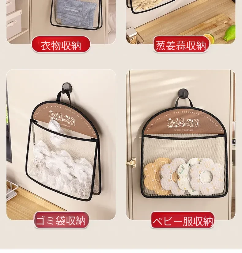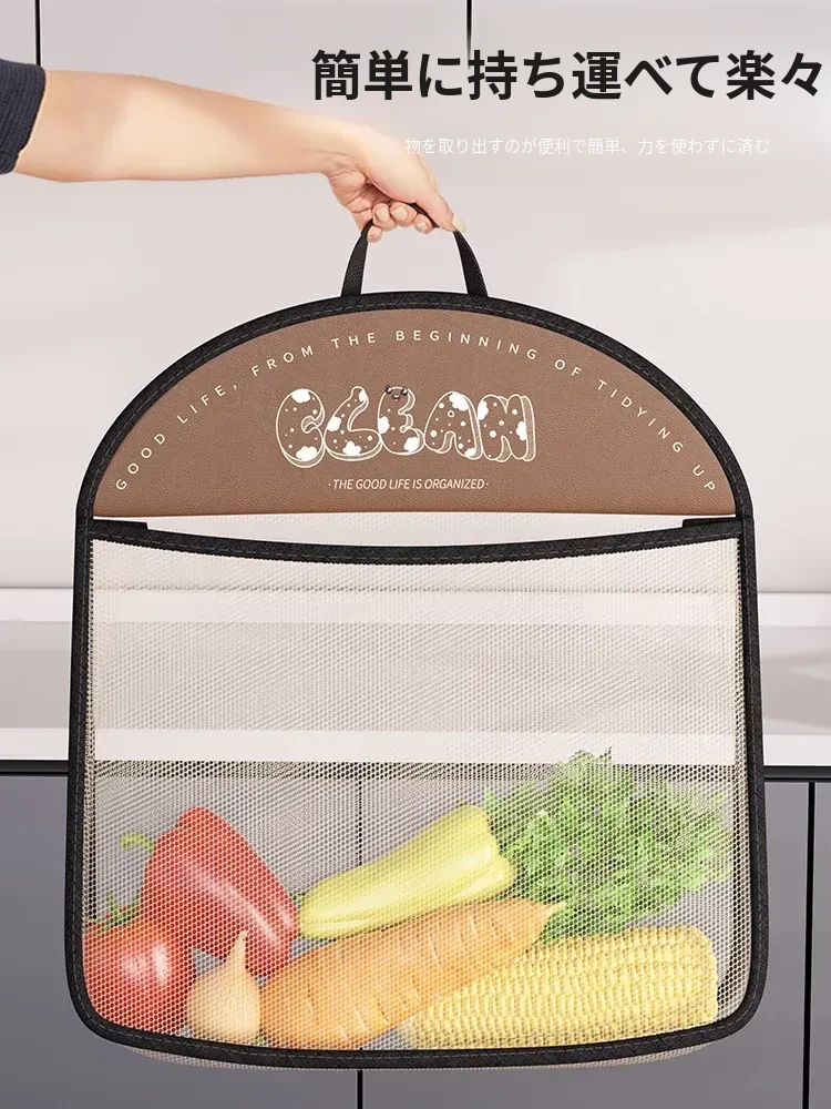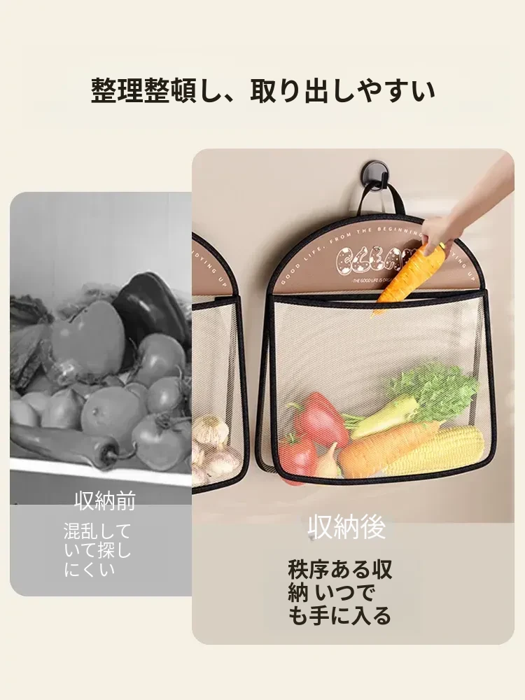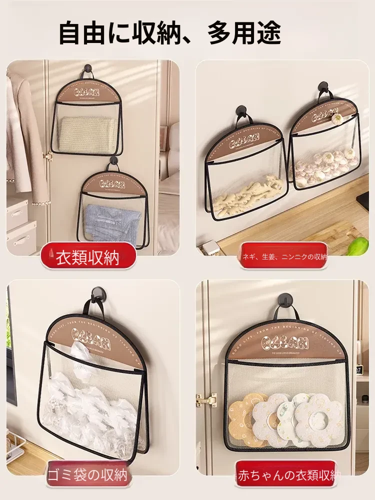 生姜とにんにくの収納マジック!多機能キッチン用野菜吊り袋 - 大蒜と生姜をスッキリ収納!プラスチック製ネットバッグで、スペースを有効活用。おしゃれで便利な収納アイテムで、料理がもっと楽しくなる!