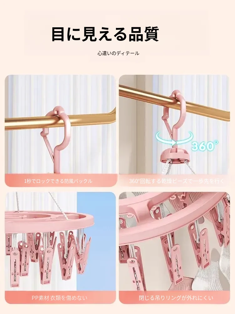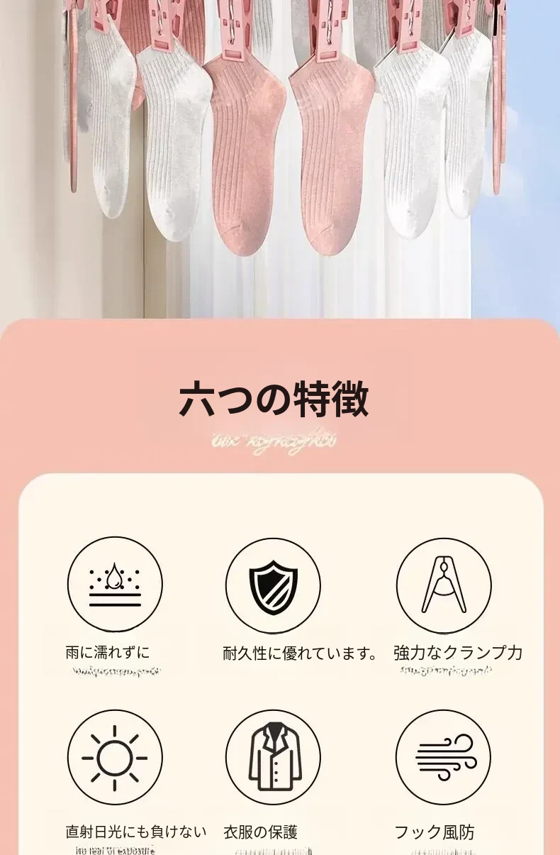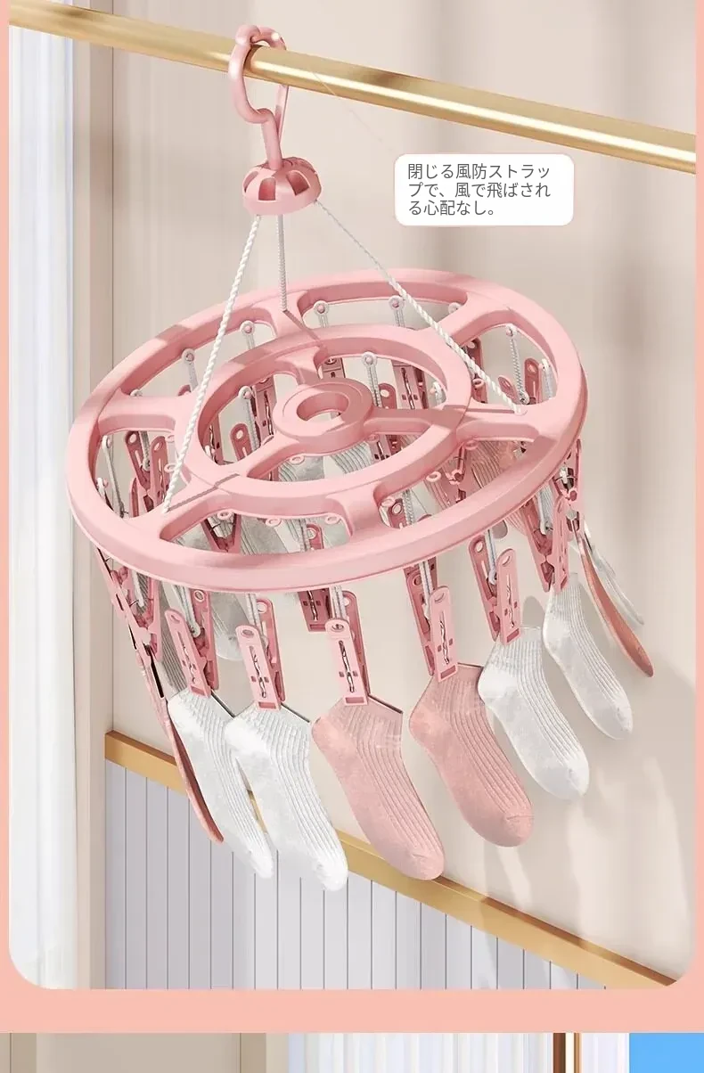 風に強い多機能ソックス干しラック - バルコニーで安心して下着や靴下を干せる収納便利グッズ!家族の洗濯物をしっかりサポートします。