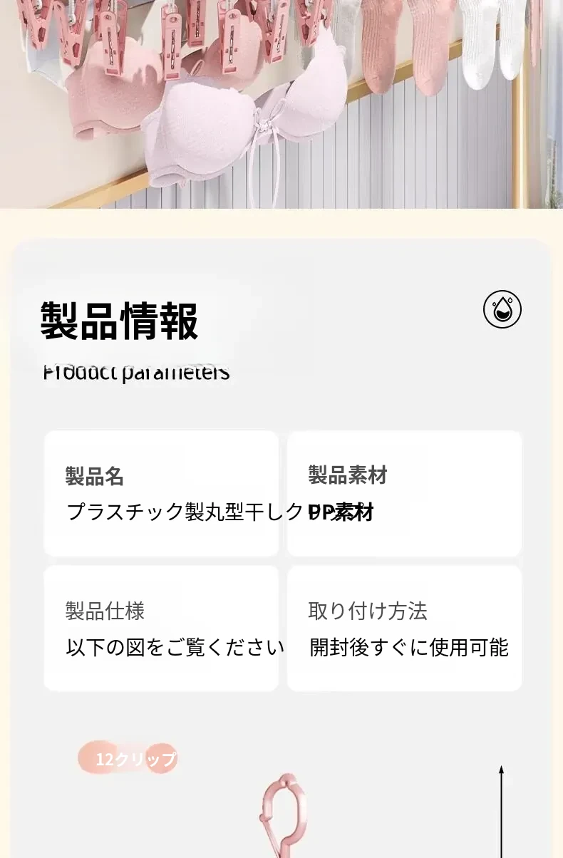 桜色12クリップ❤【強力なクリップ/強風にも負けない/滑り止め・跡なし】