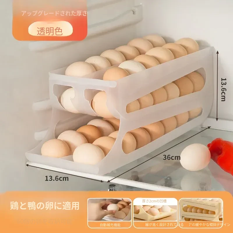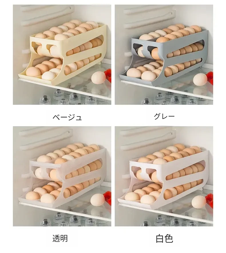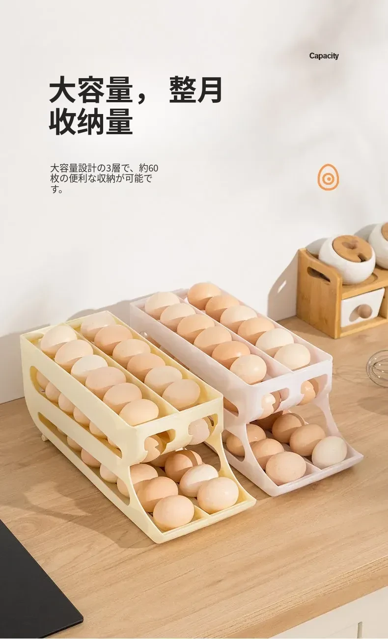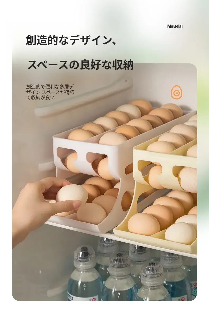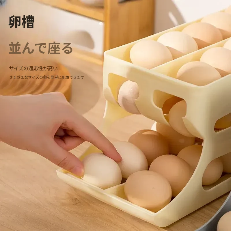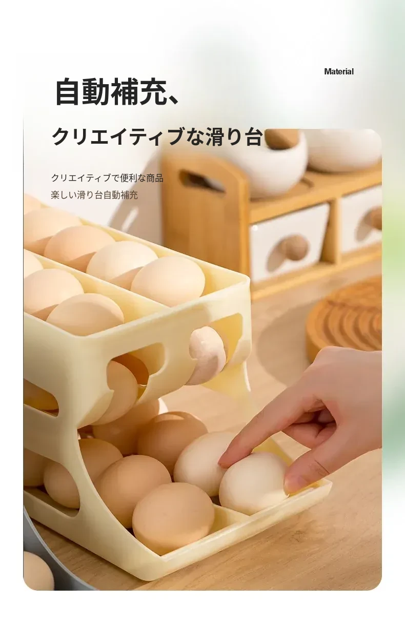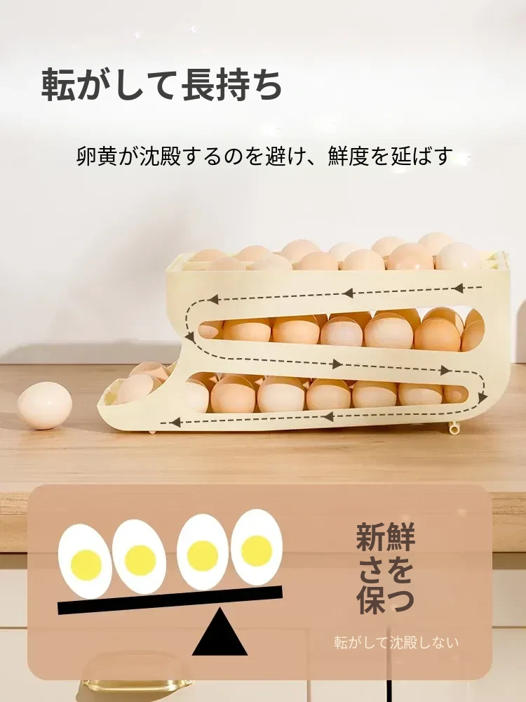 自動回転機能付き!多層スライド式卵収納ボックス - 冷蔵庫のサイドドアにぴったりフィットする卵トレー、鮮度を保つ専用保管ケース。キッチンをスッキリ整理!