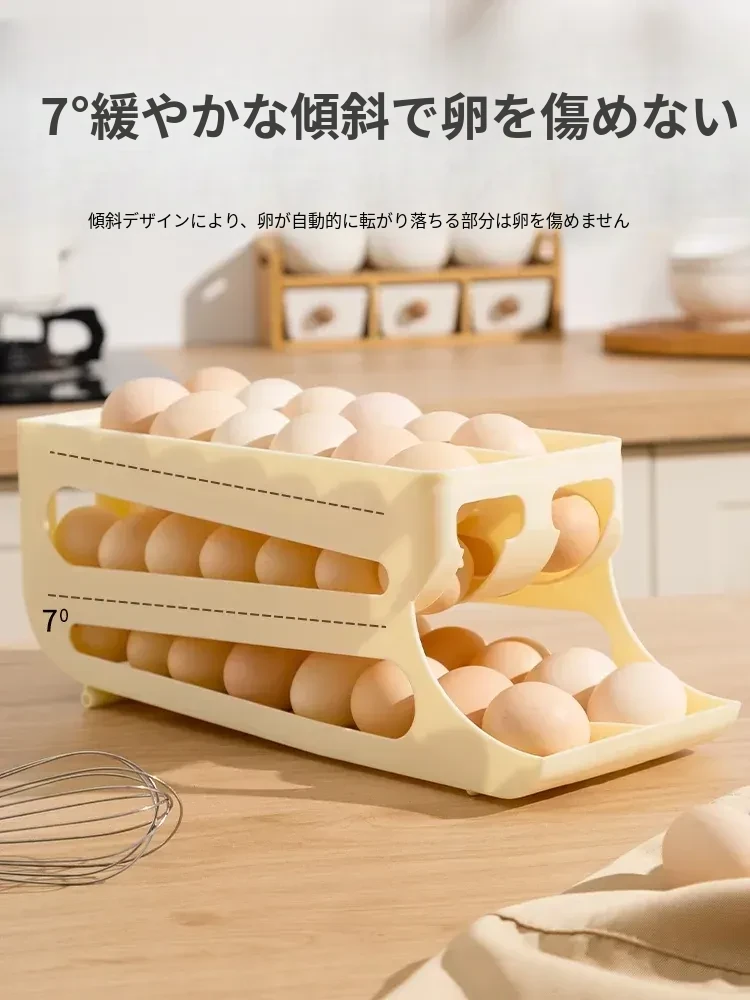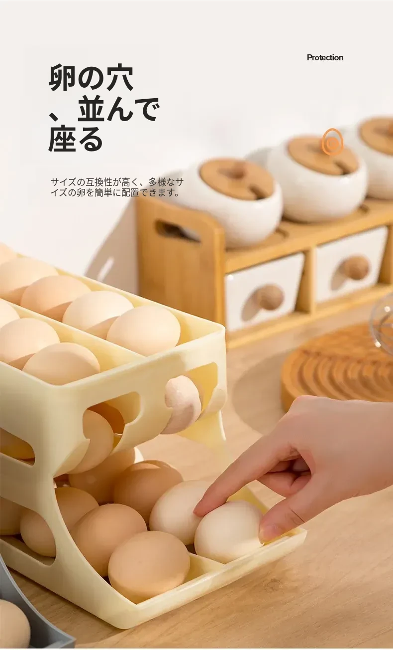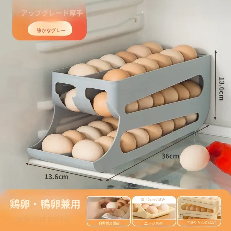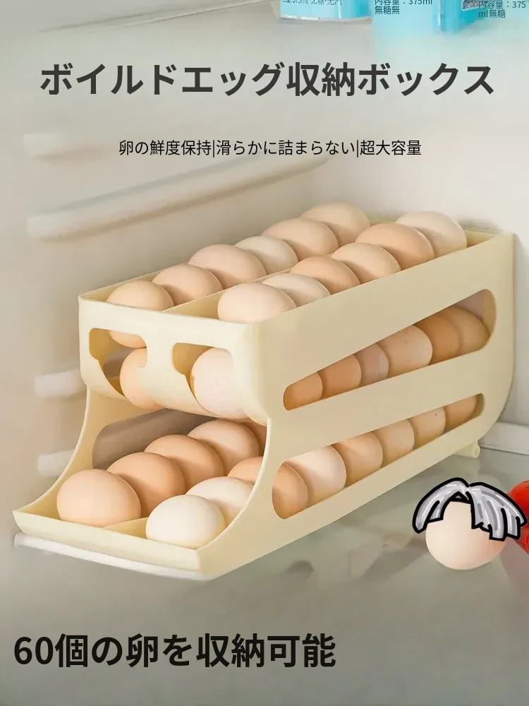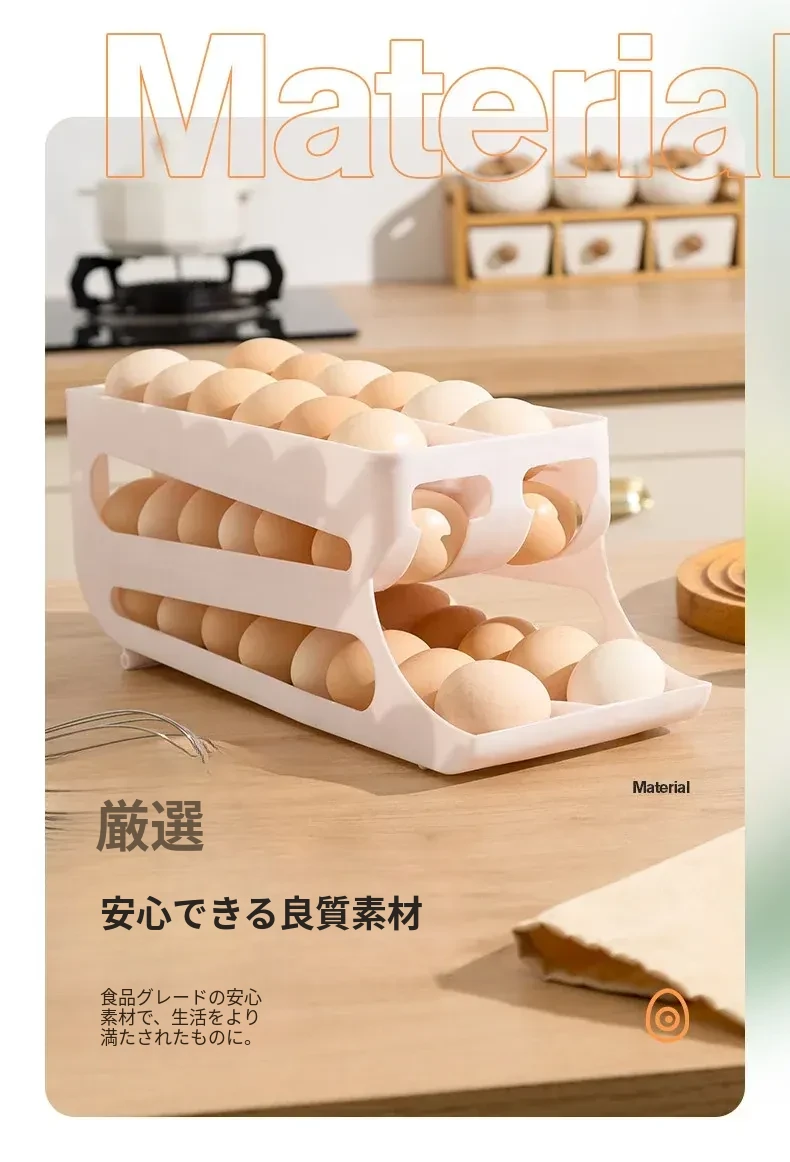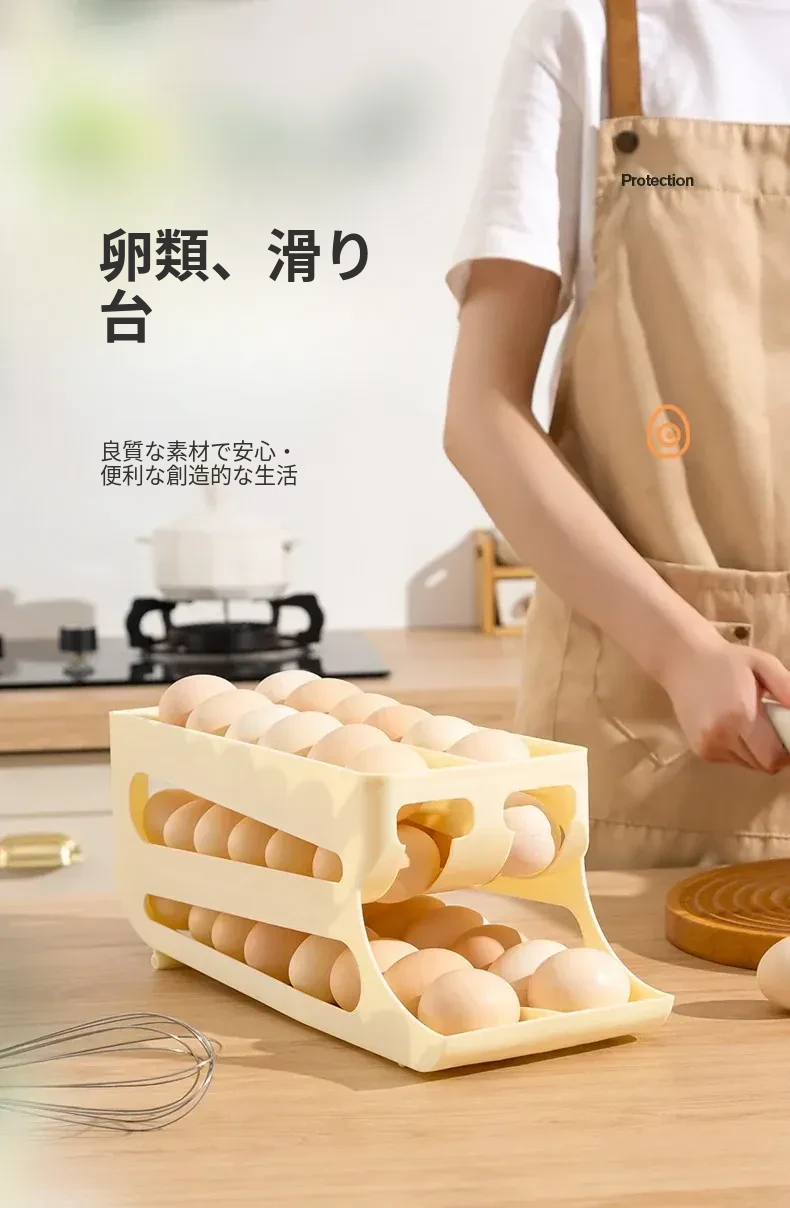 自動回転機能付き!多層スライド式卵収納ボックス - 冷蔵庫のサイドドアにぴったりフィットする卵トレー、鮮度を保つ専用保管ケース。キッチンをスッキリ整理!