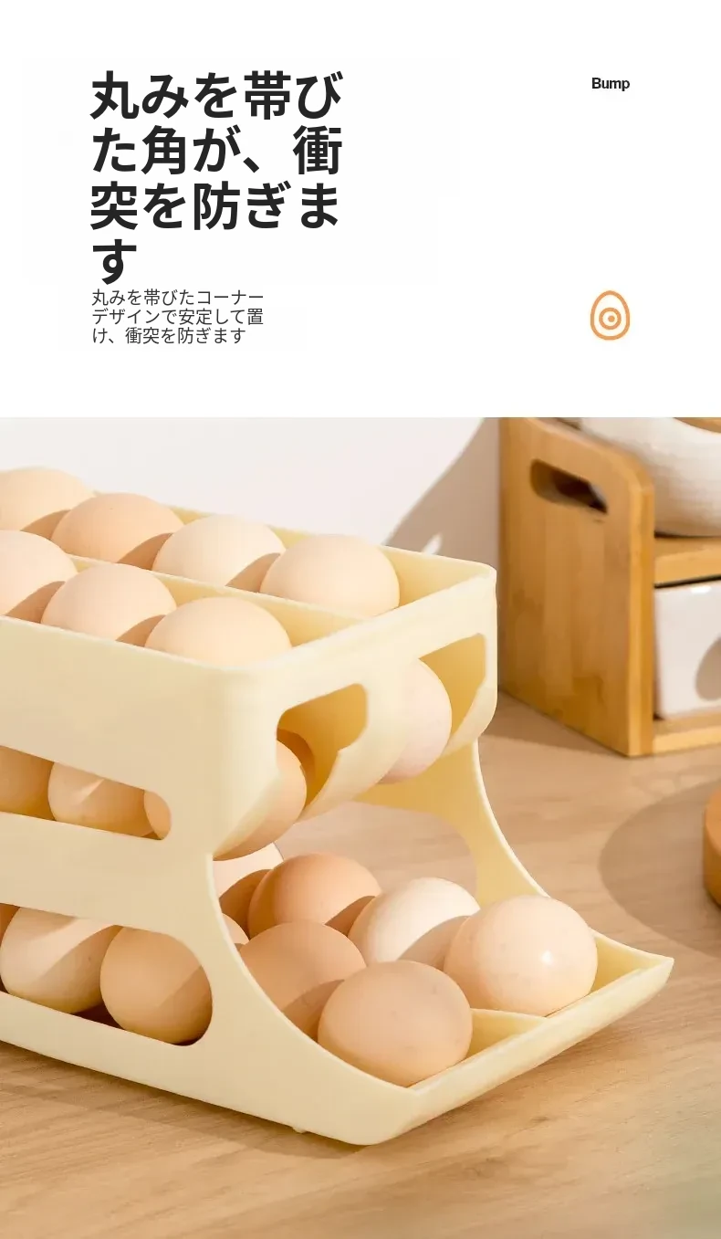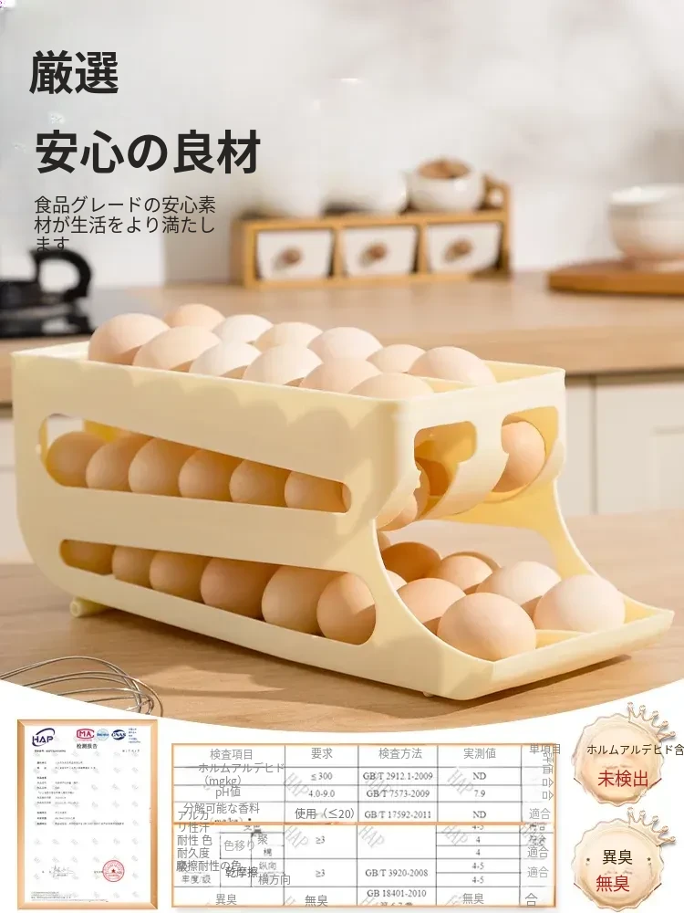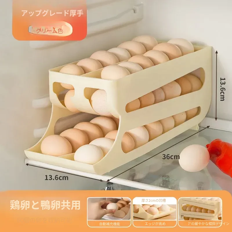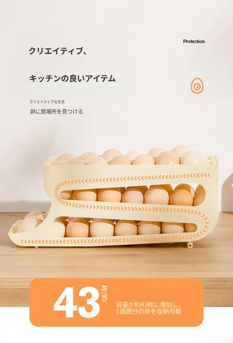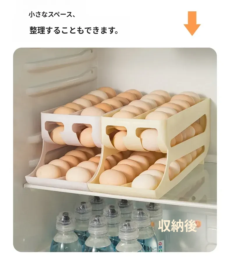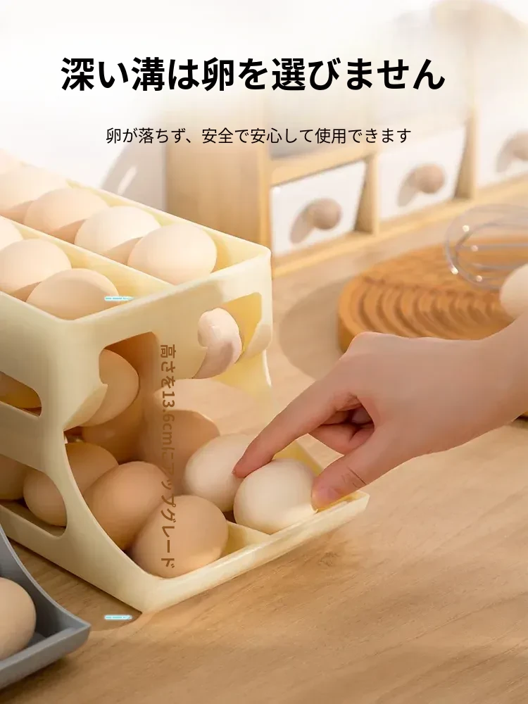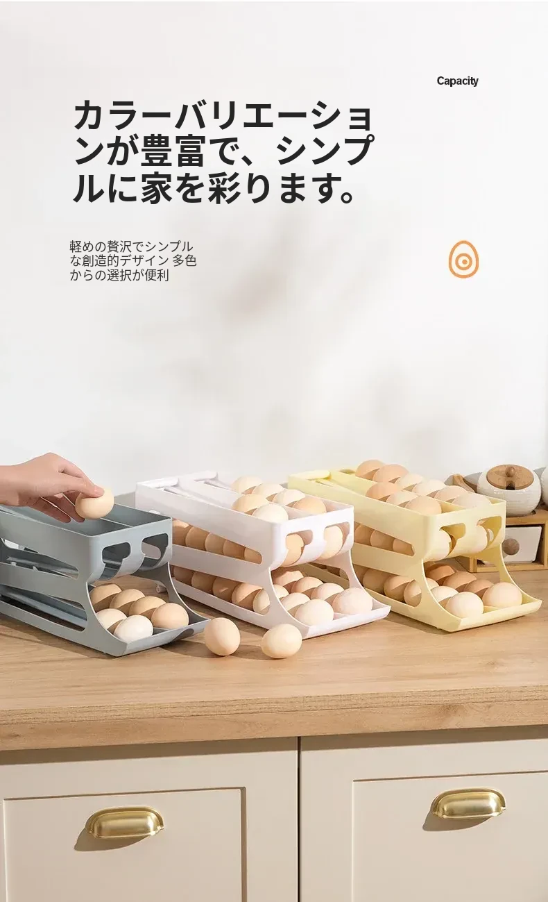 自動回転機能付き!多層スライド式卵収納ボックス - 冷蔵庫のサイドドアにぴったりフィットする卵トレー、鮮度を保つ専用保管ケース。キッチンをスッキリ整理!