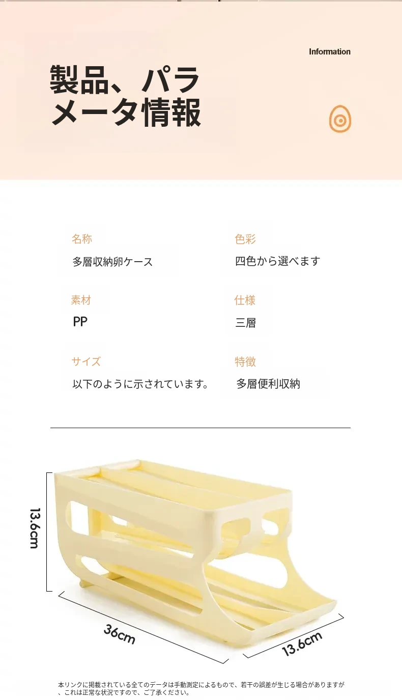 人気商品⭐クリーム色-1個入り【約60個の卵が収納可能】✅