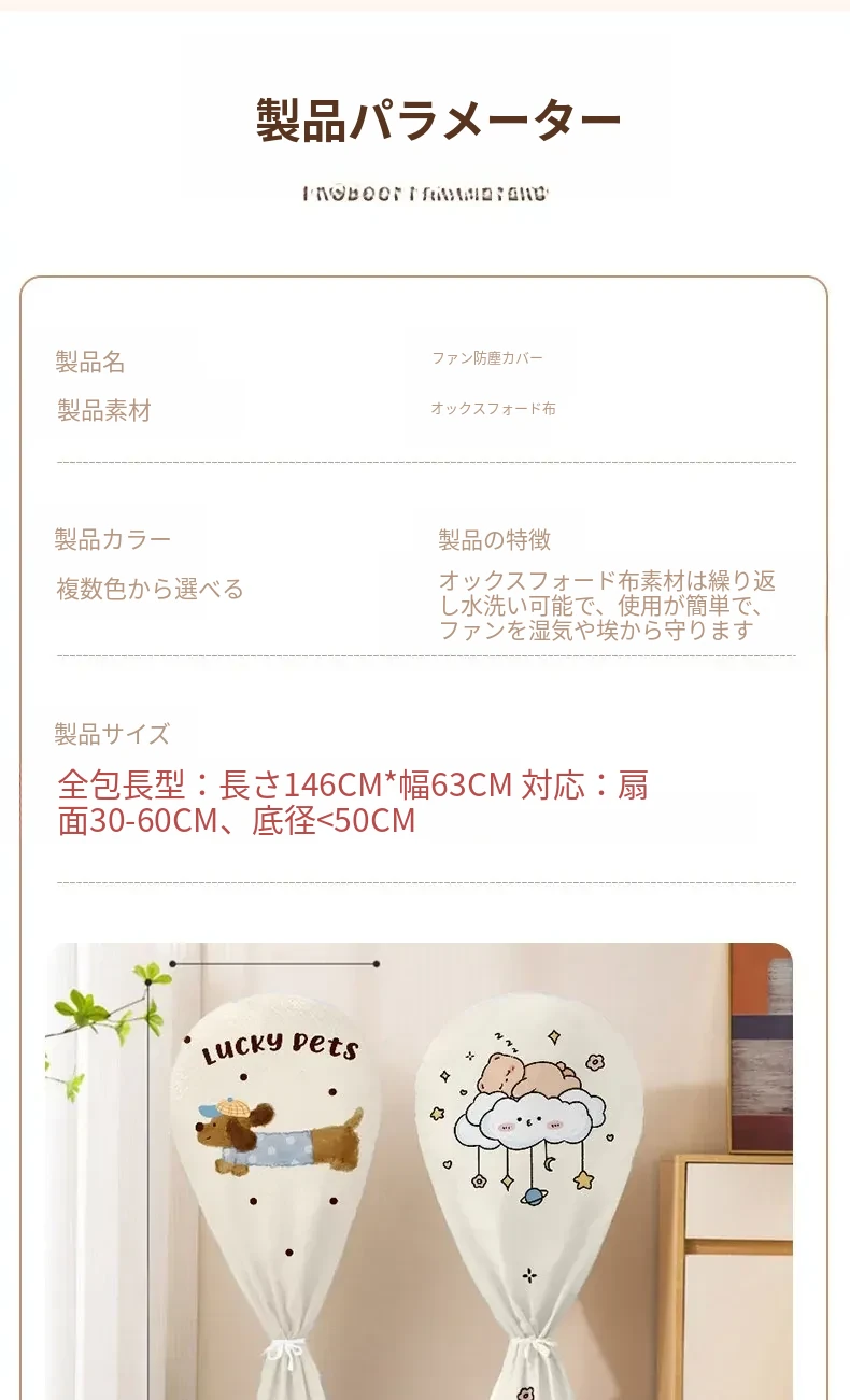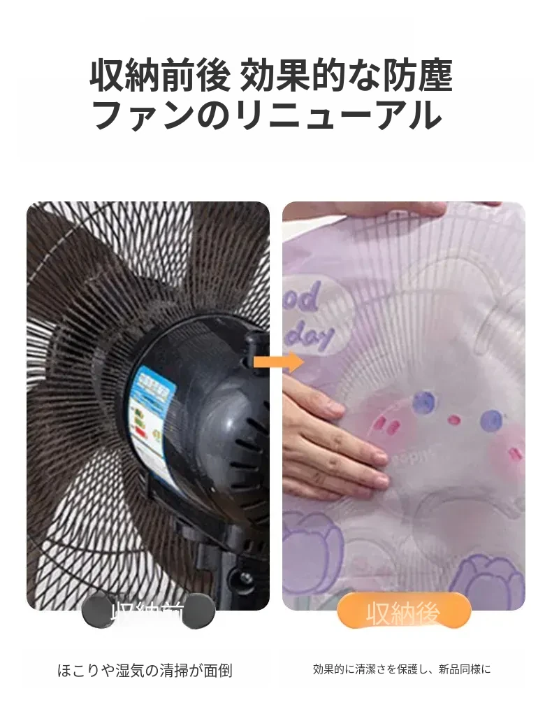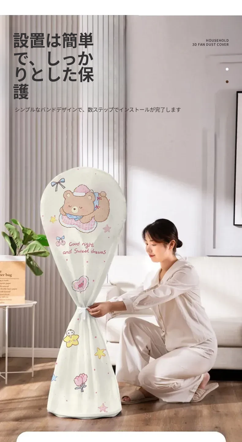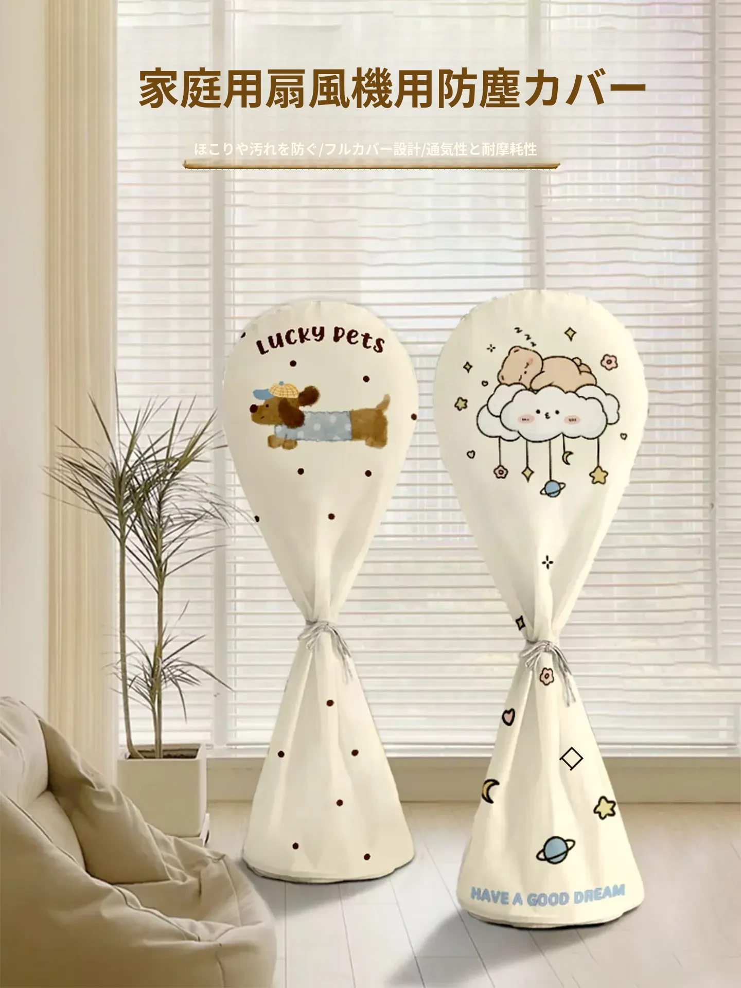 新型電動ファン用防塵カバー|家庭用スタンドファン・タワーファンに対応|全包型でほこりからしっかり保護!お部屋を清潔に保つ必需品!