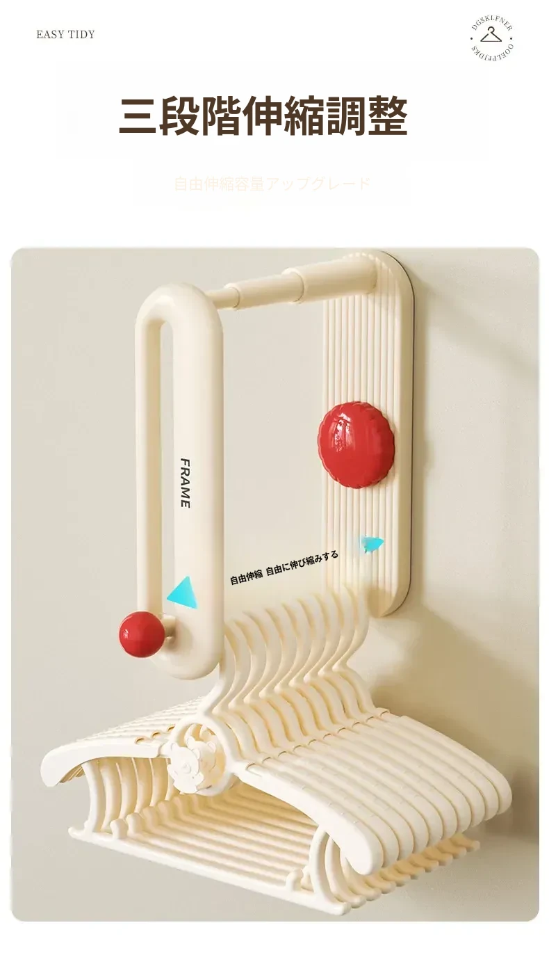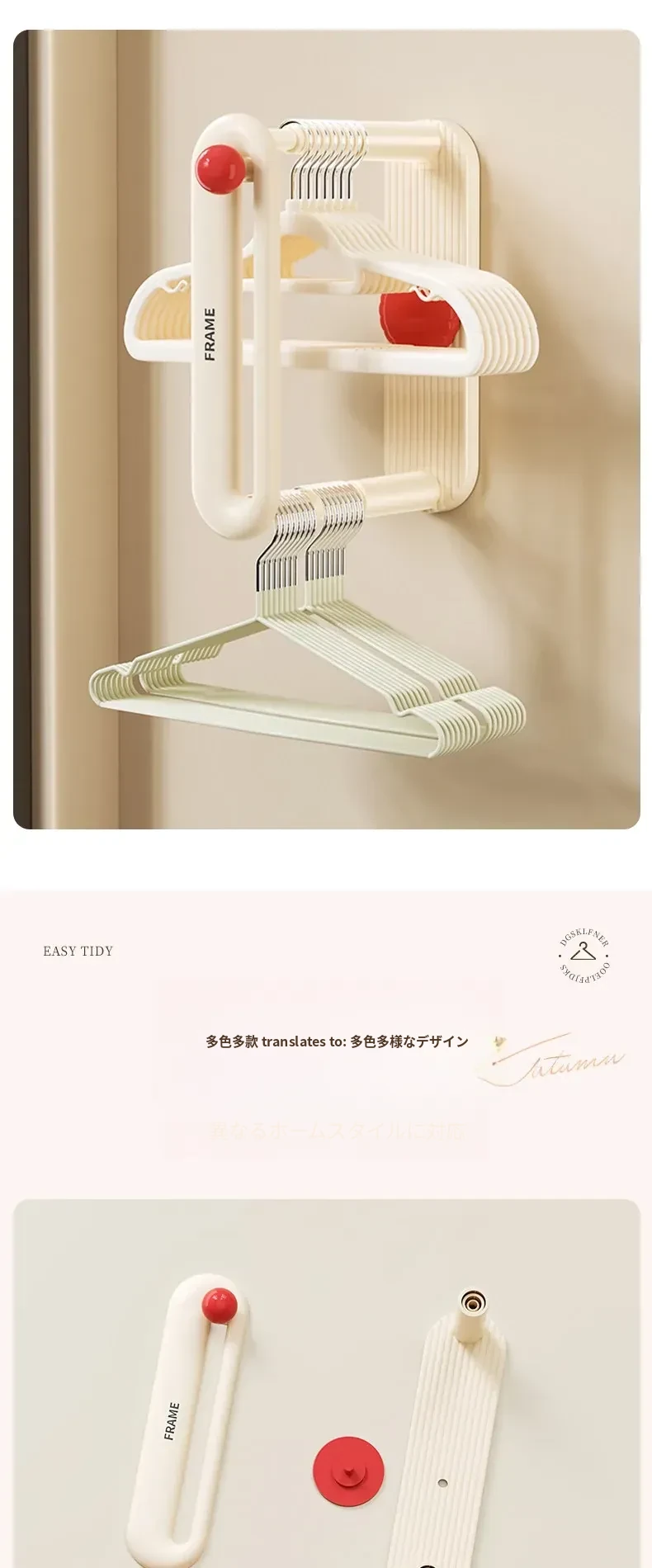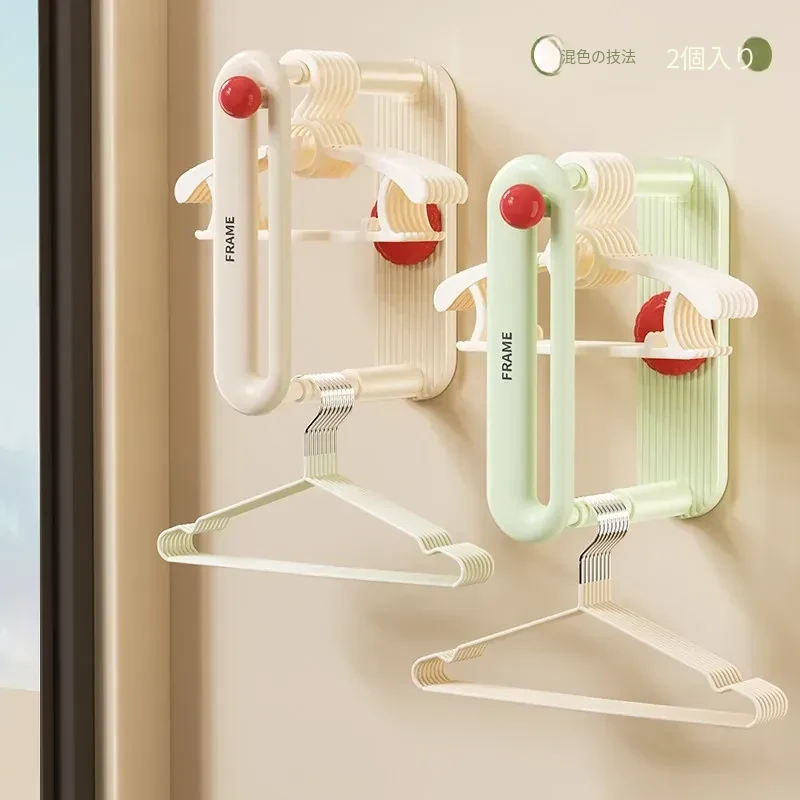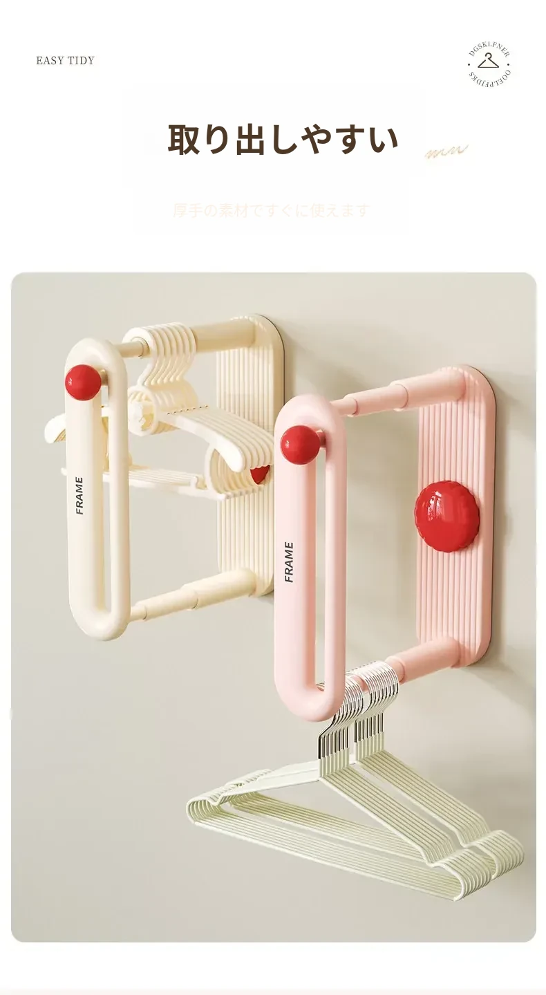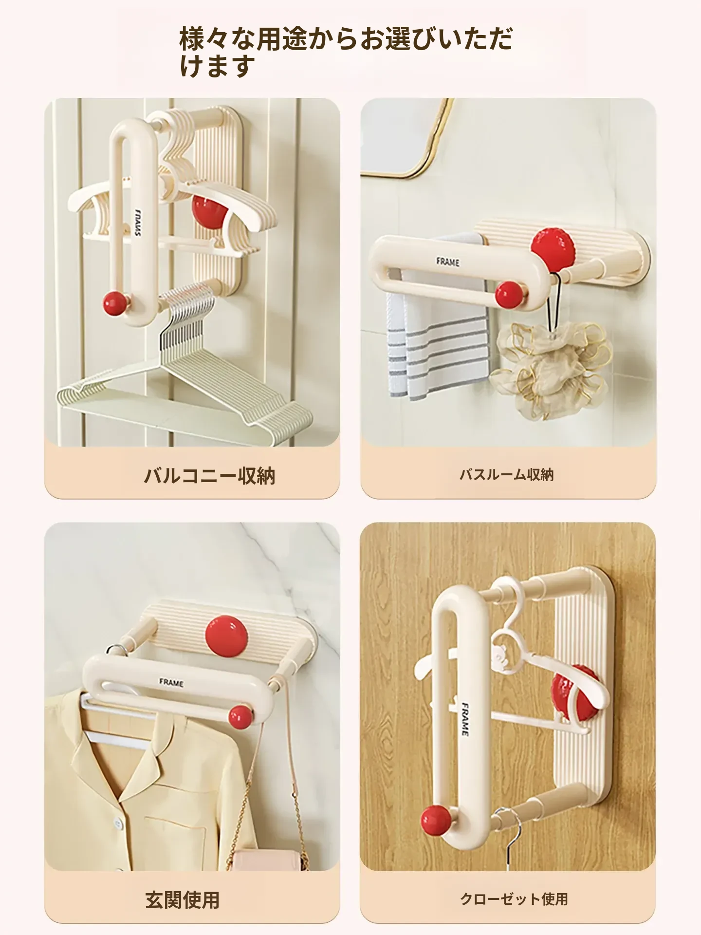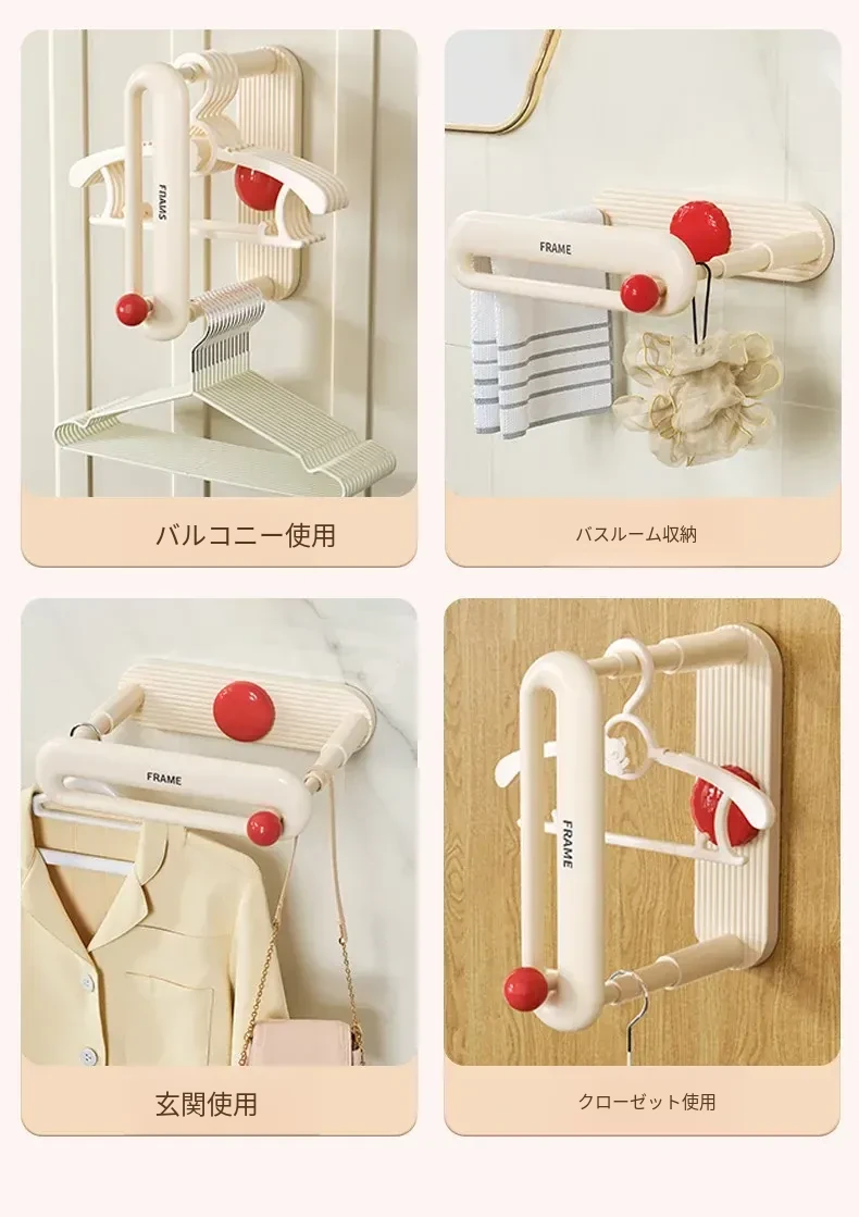 壁掛け衣類収納ラック - 穴あけ不要で簡単取り付け!バルコニーやお部屋での衣類整理に最適。スッキリとしたデザインで、衣類をしっかり収納&干せる便利アイテム!