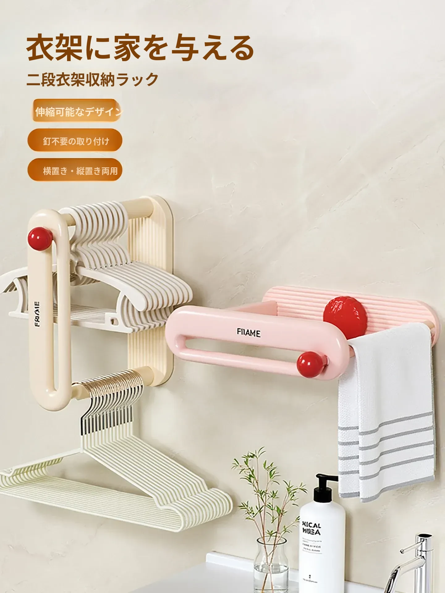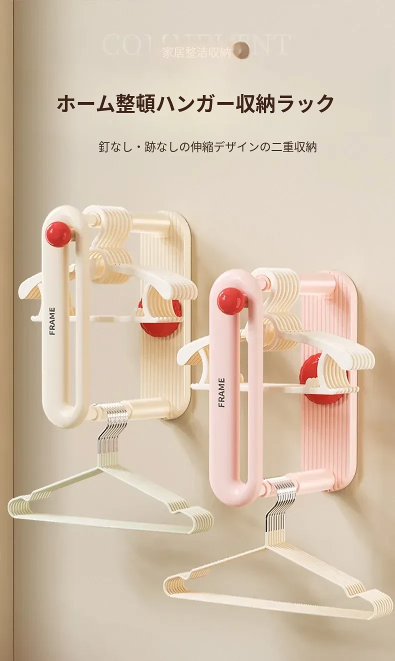ピンク❤2個セット【二重収納/約80個ハンガーを掛けられます】