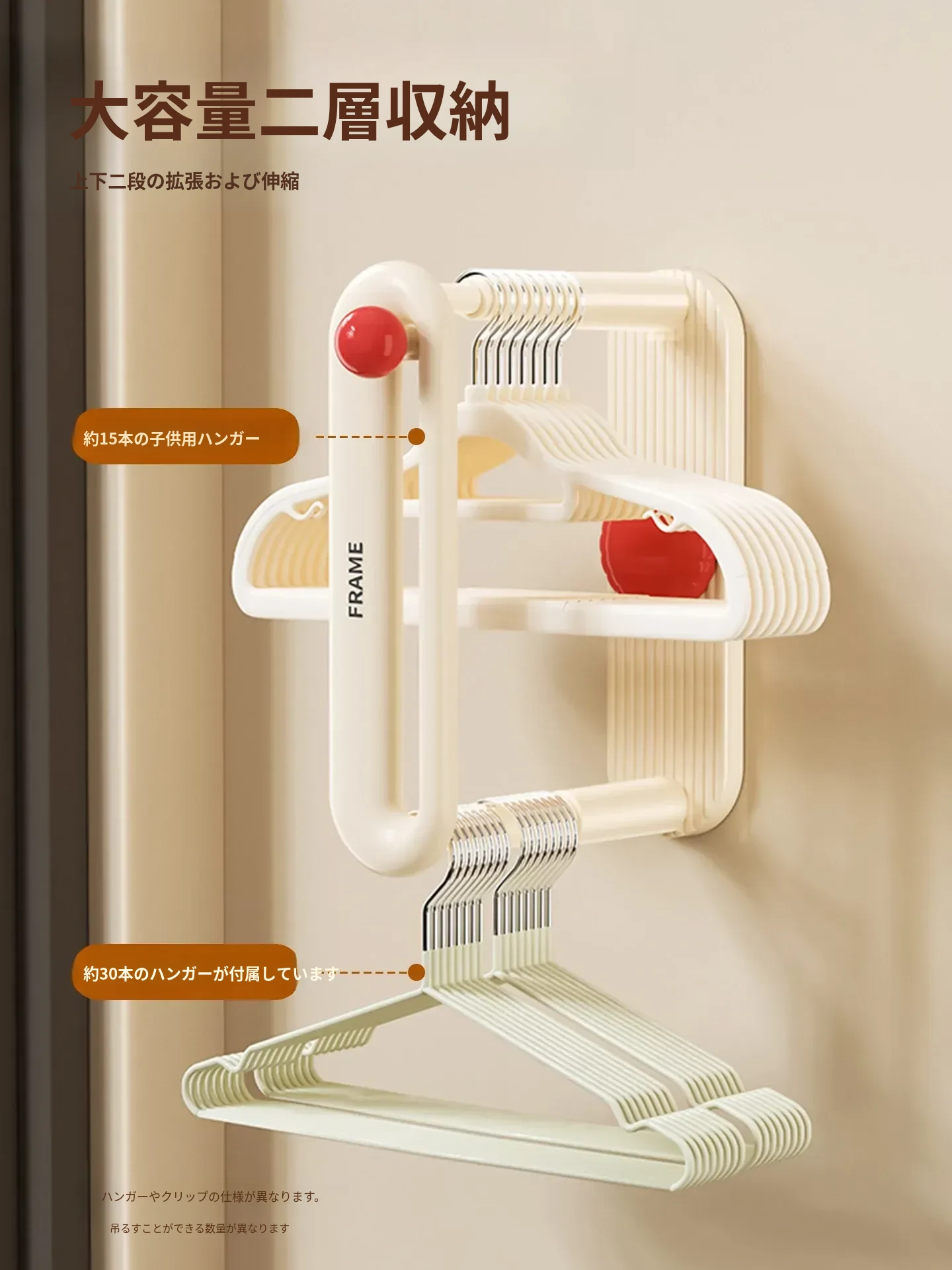 クリームホワイト❤2個セット【二重収納/約80個ハンガーを掛けられます】