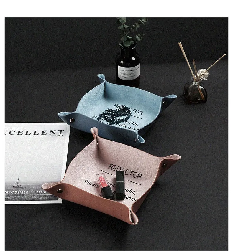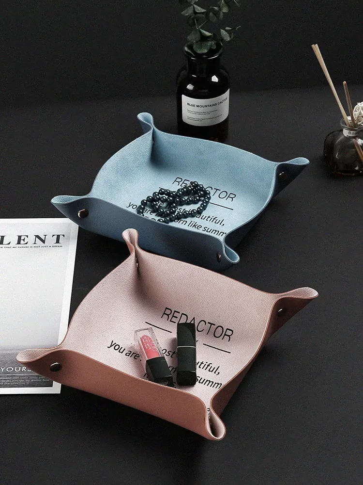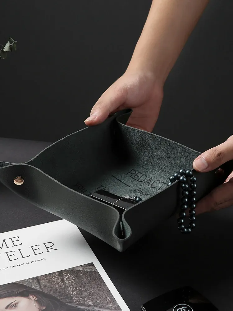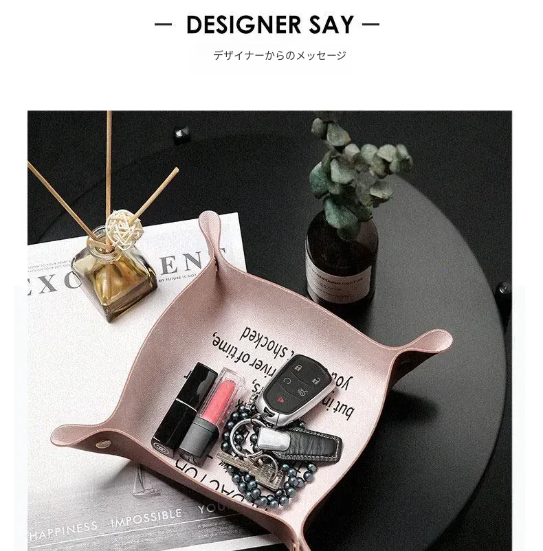 北欧風インテリアにぴったり!玄関のキー収納ボックス - おしゃれなデザインのレザー製トレーで、キーや小物をスタイリッシュに整理整頓。卓上のアクセントとしても最適!