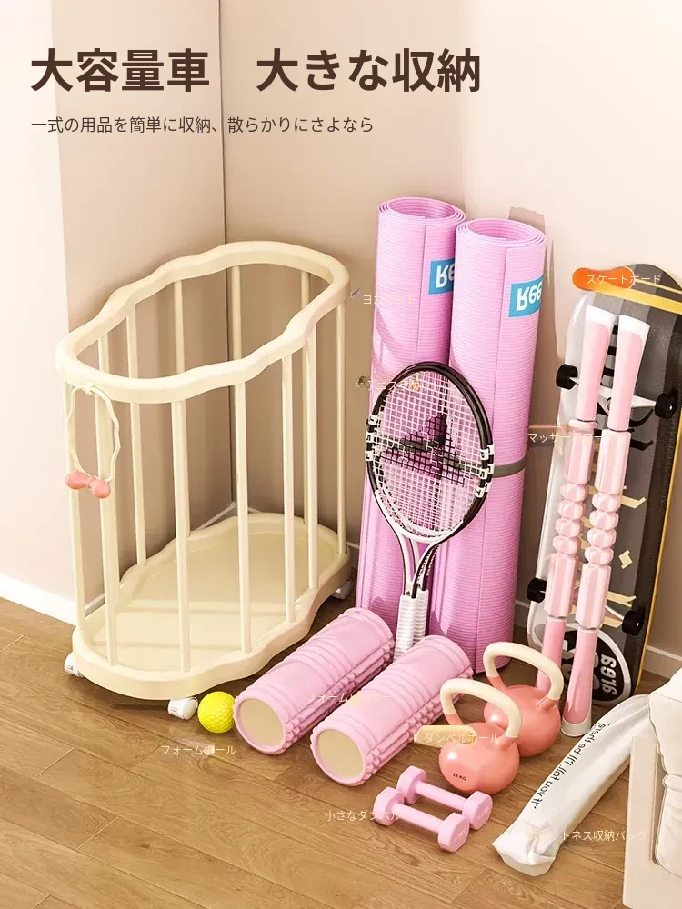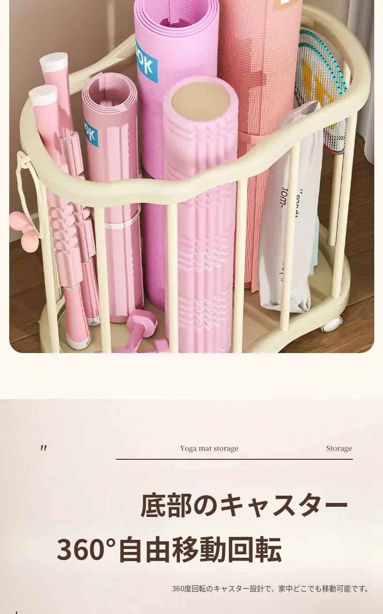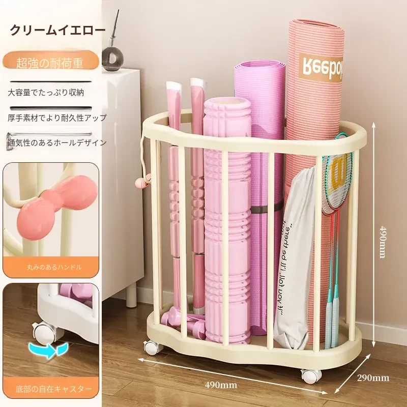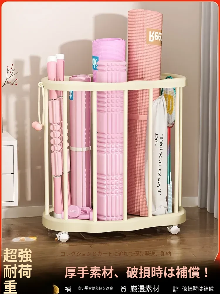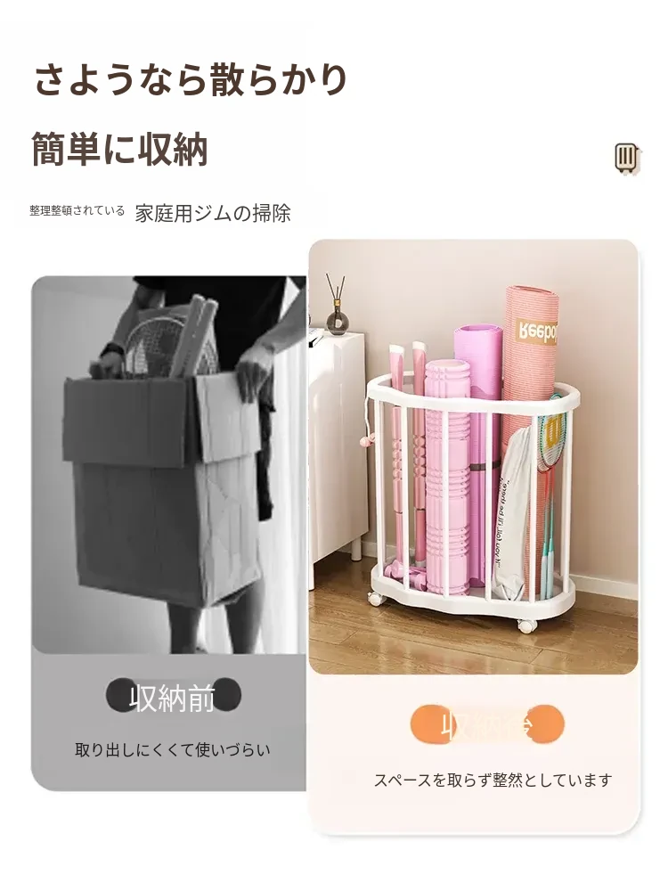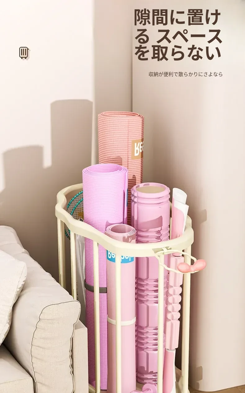 ヨガマット収納バスケット|家庭用スポーツ器具・バスケットボール用品の整理整頓に最適!フィットネス器具をスッキリ収納できる便利な収納ラック!お部屋をスッキリ整えて、運動をもっと楽しもう!