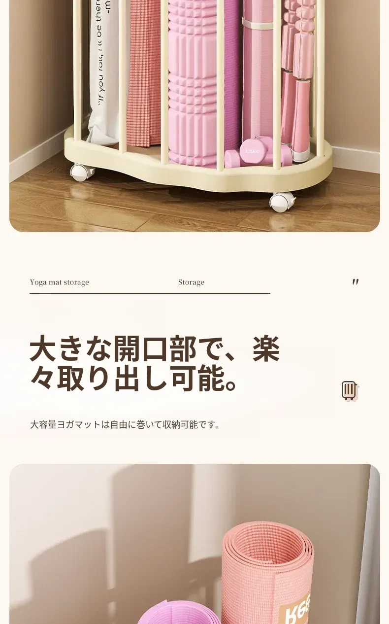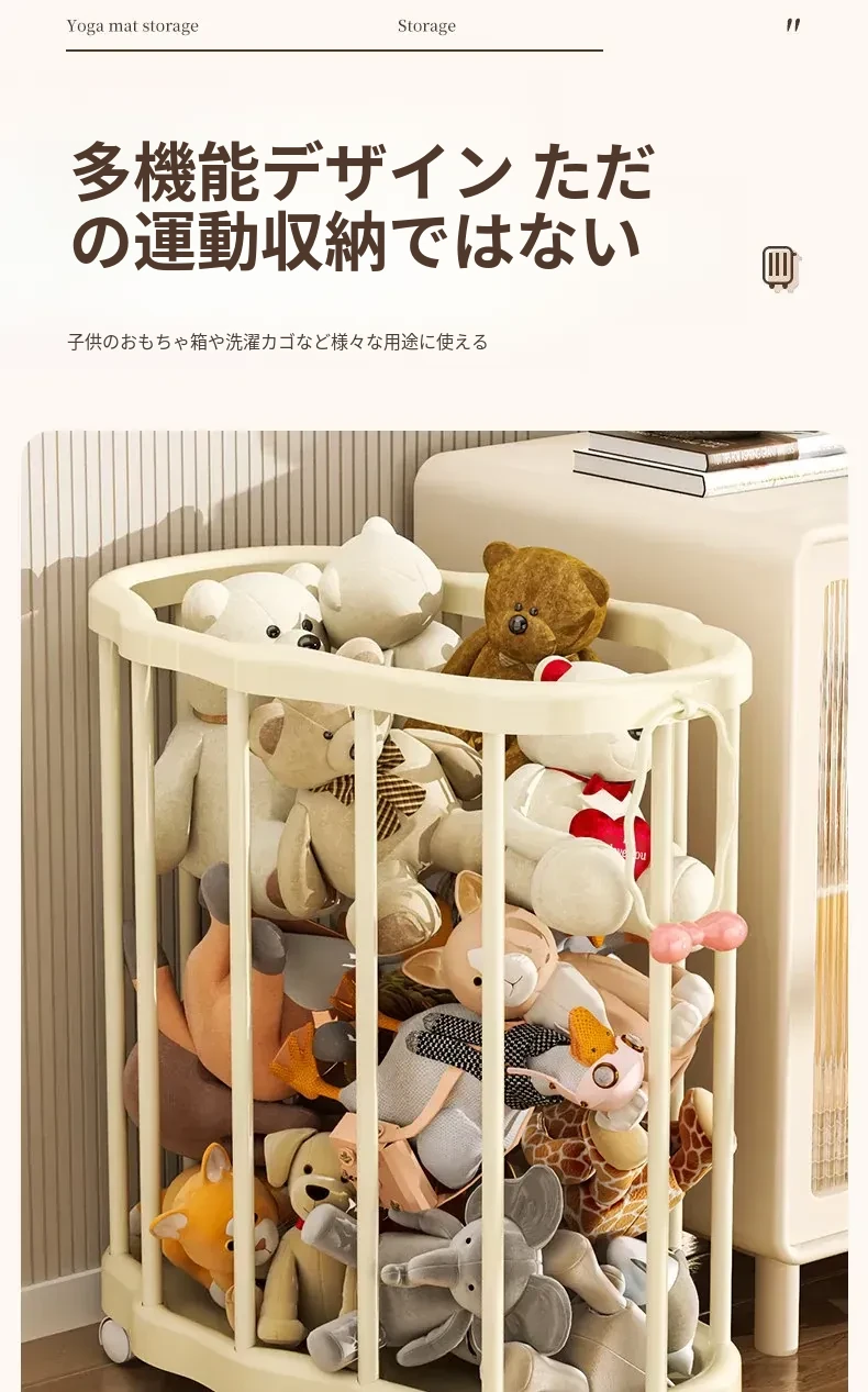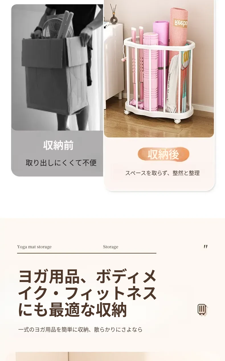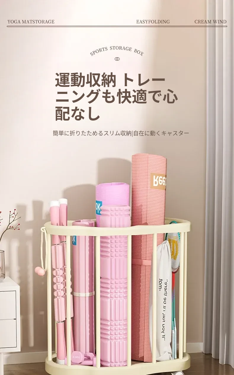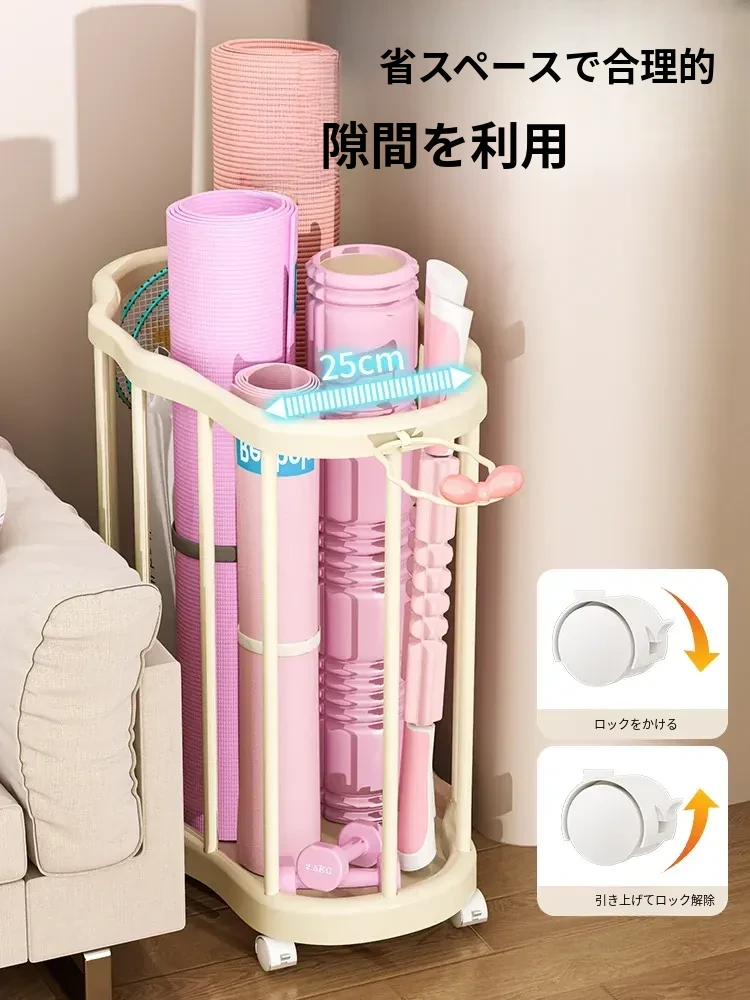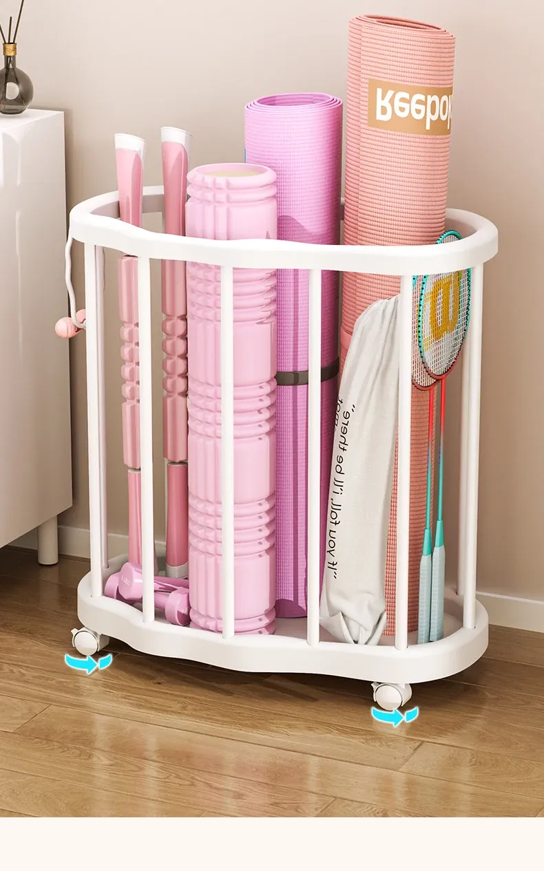 ヨガマット収納バスケット|家庭用スポーツ器具・バスケットボール用品の整理整頓に最適!フィットネス器具をスッキリ収納できる便利な収納ラック!お部屋をスッキリ整えて、運動をもっと楽しもう!