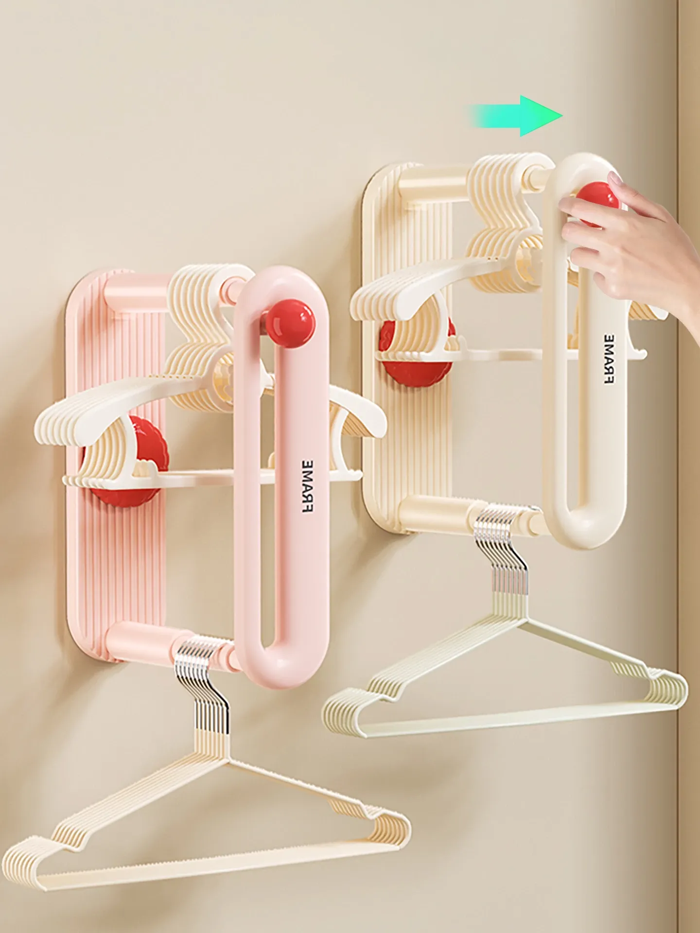 壁掛け衣類収納ラック - 穴あけ不要で簡単取り付け!バルコニーやお部屋での衣類整理に最適。スッキリとしたデザインで、衣類をしっかり収納&干せる便利アイテム!