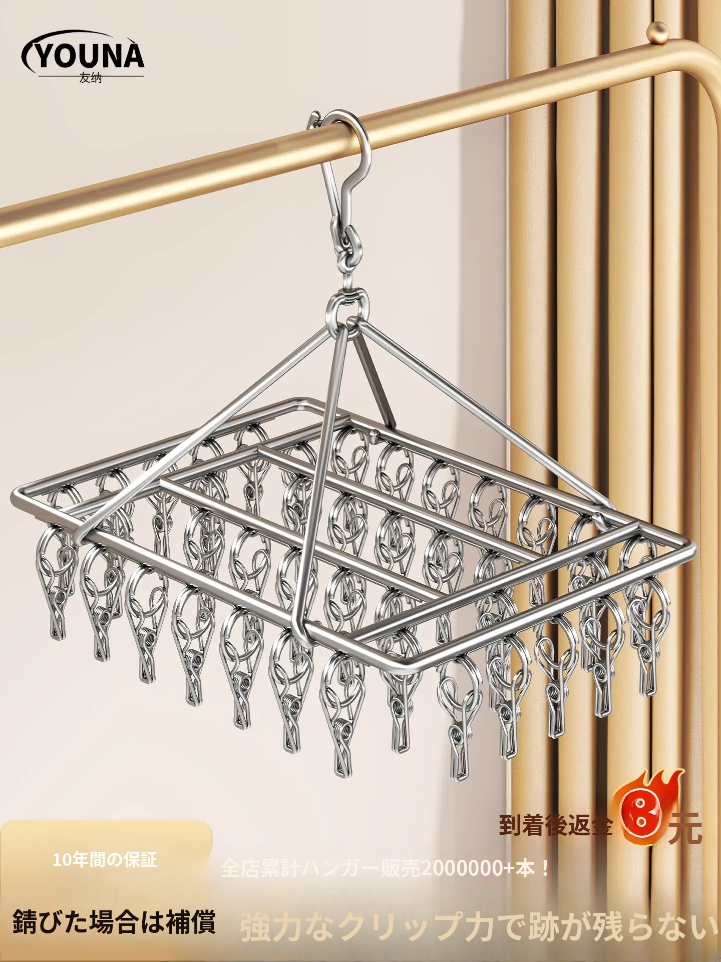 無痕ステンレス靴下干しハンガー - 家庭用、クリップ付き!バルコニーで靴下や下着を簡単に干せる便利なアイテム。省スペースでおしゃれな干し方を実現します!