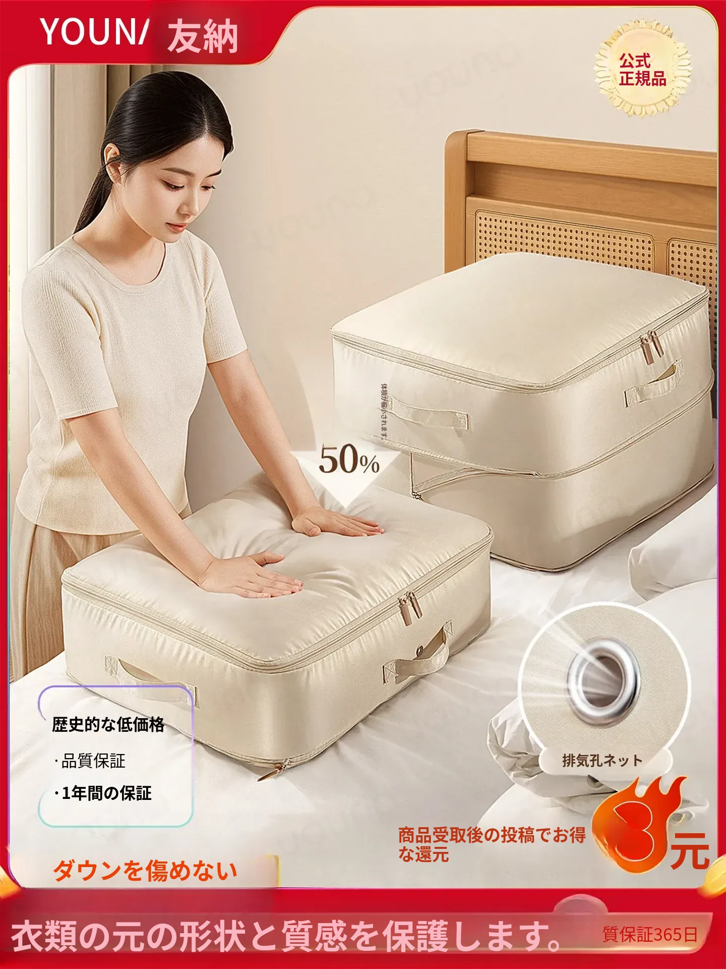 ダウンジャケット収納袋 大容量 厚手 衣類整理に最適 押入れ用 掛け布団も入るオックスフォード生地収納ボックス