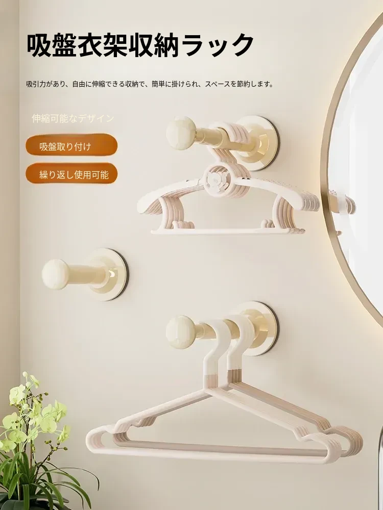 吸盤式衣架収納神器!家用バルコニーに最適な多機能伸縮型、穴を開けずに無痕で壁掛け可能。スペースを有効活用し、快適な暮らしをサポートします!