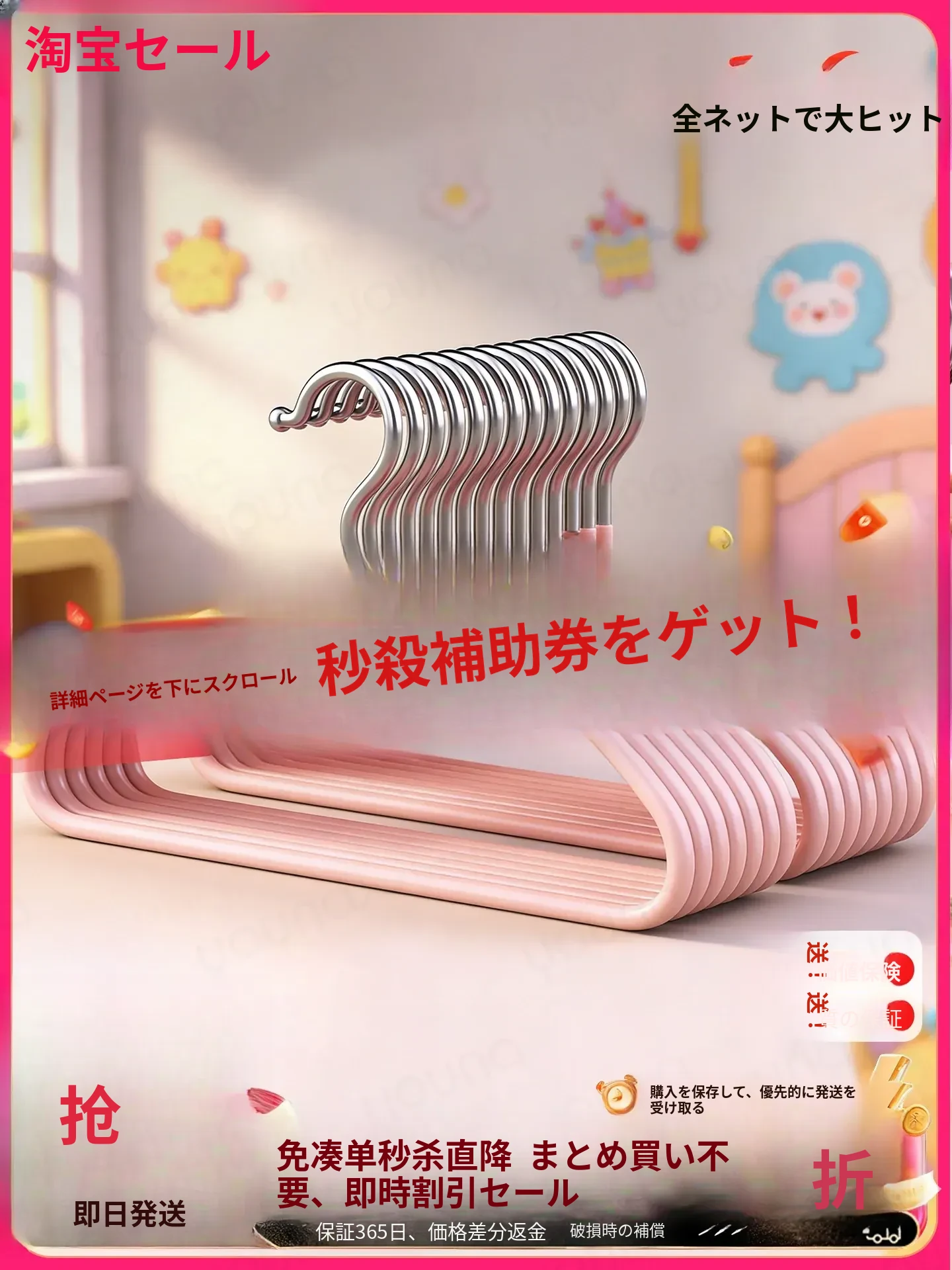 無痕・防滑・強化タイプの衣類ハンガー!学生寮に最適な大容量・太型設計で、肩の形を守りながら衣服をしっかり支えます。あなたの大切な衣類を優しく守る、家庭用ハンガーの決定版!