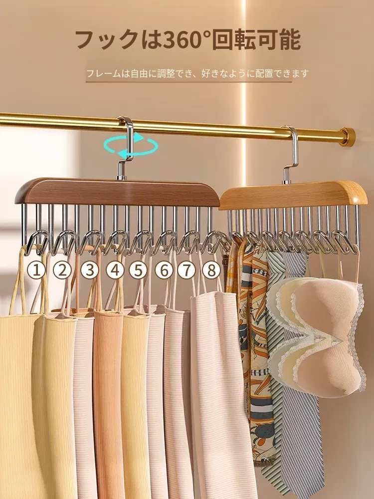 木製インナーウェア用ハンガー - 多機能で家庭にぴったりな衣類収納アイテム!ベストやネクタイもおしゃれに収納できる実木製ハンガーで、クローゼットをスッキリ整頓!