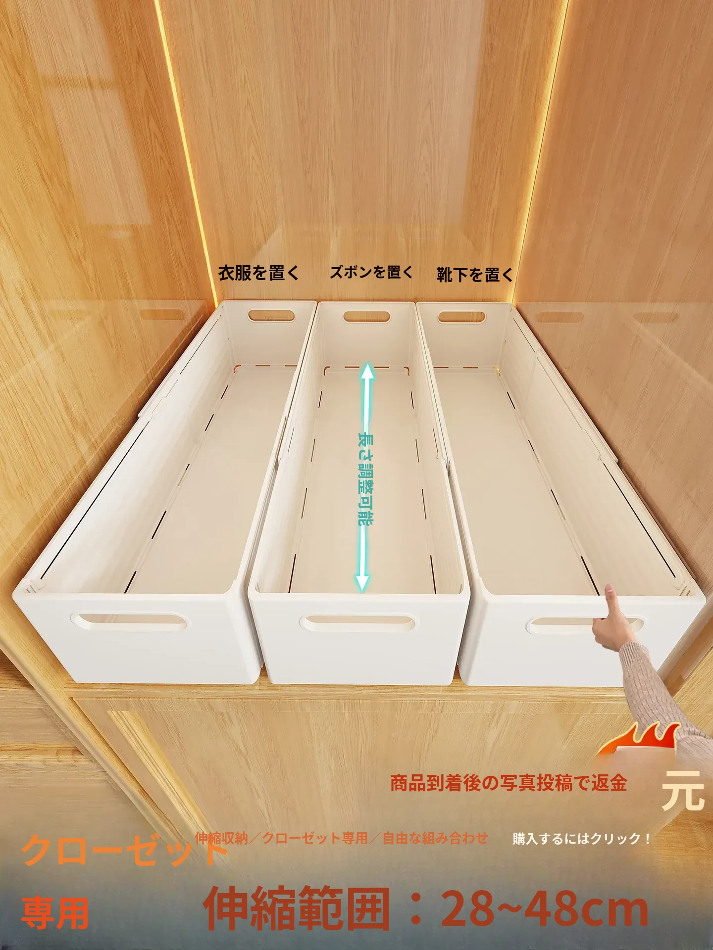 伸縮式インナー収納ボックス - 靴下・パンツ・密着衣類をすっきり整理!家庭用3in1クローゼット収納の必需品!収納力抜群で、すっきりしたお部屋を実現!