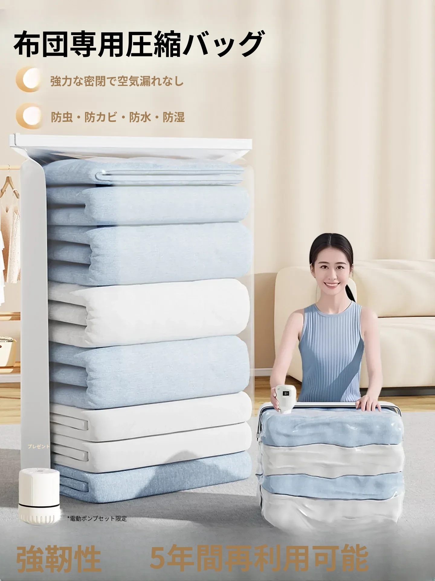 真空圧縮袋 衣類・布団・ダウンジャケット専用 整理袋 家庭用 密封・抽気 行李箱収納袋 旅行や収納に最適!衣類をすっきり整理し、スペースを有効活用!