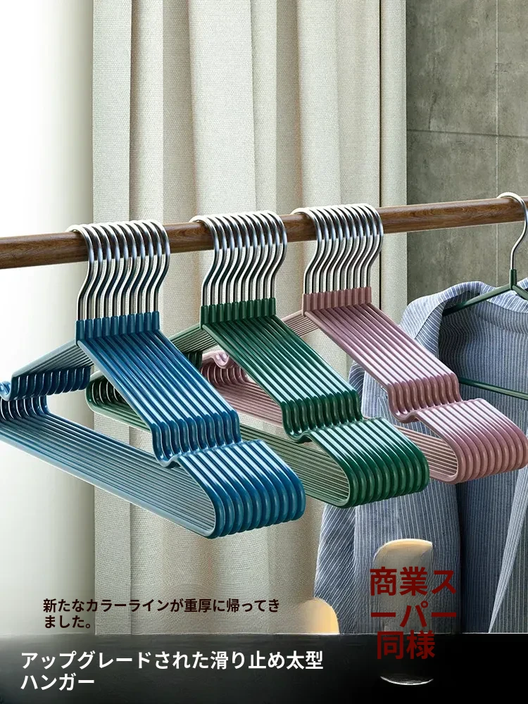 厚手無痕ハンガー - 家庭用・滑り止め設計で衣類をしっかり保持!学生寮にも最適な頑丈な衣掛け、掛けやすさ抜群で衣類を傷めません。おしゃれな収納を実現しましょう!