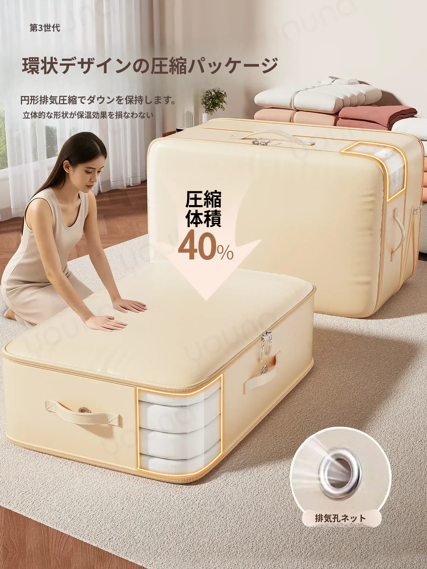 大容量羽毛布団収納袋|衣類・布団もスッキリ整理!引っ越しや収納に最適な圧縮バッグで、スペースを最大限に活用しましょう!