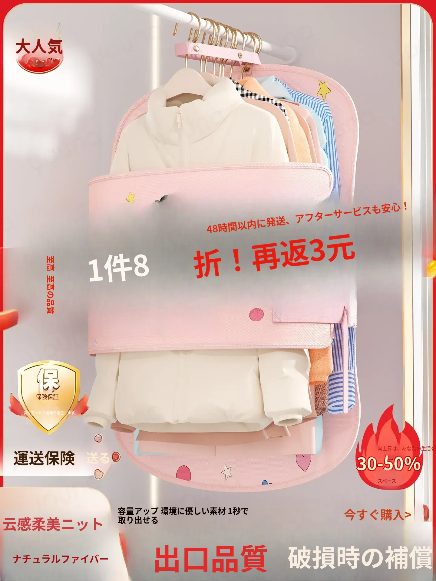 衣類収納の救世主!圧縮収納袋で衣類をスッキリ整理!防塵カバー付き、コートやダウンジャケットもしっかり守ります。衣柜をスッキリ整頓して、毎日のスタイリングをもっと楽に!