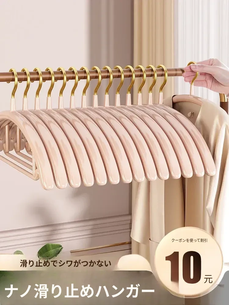 家庭用衣類ハンガー - 無痕・滑り止め設計で肩のラインを守る!厚手・太めで大きな衣服も安心して吊るせる、洗濯物干しハンガー。おしゃれで機能的、あなたの衣類を美しく保ちます!