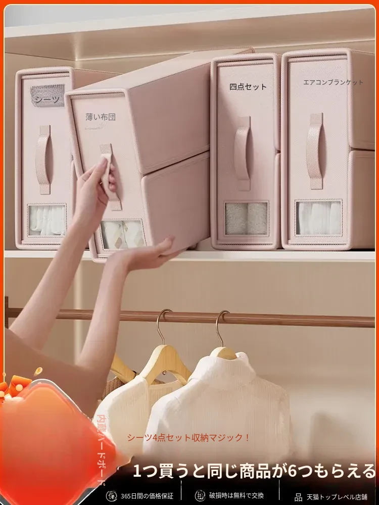 季節の変わり目に最適!収納袋付きのベッドシーツ・カバー4点セット。羽毛布団や衣類をスッキリ整理できる分格収納ボックス。お家での整理整頓をもっと便利に!