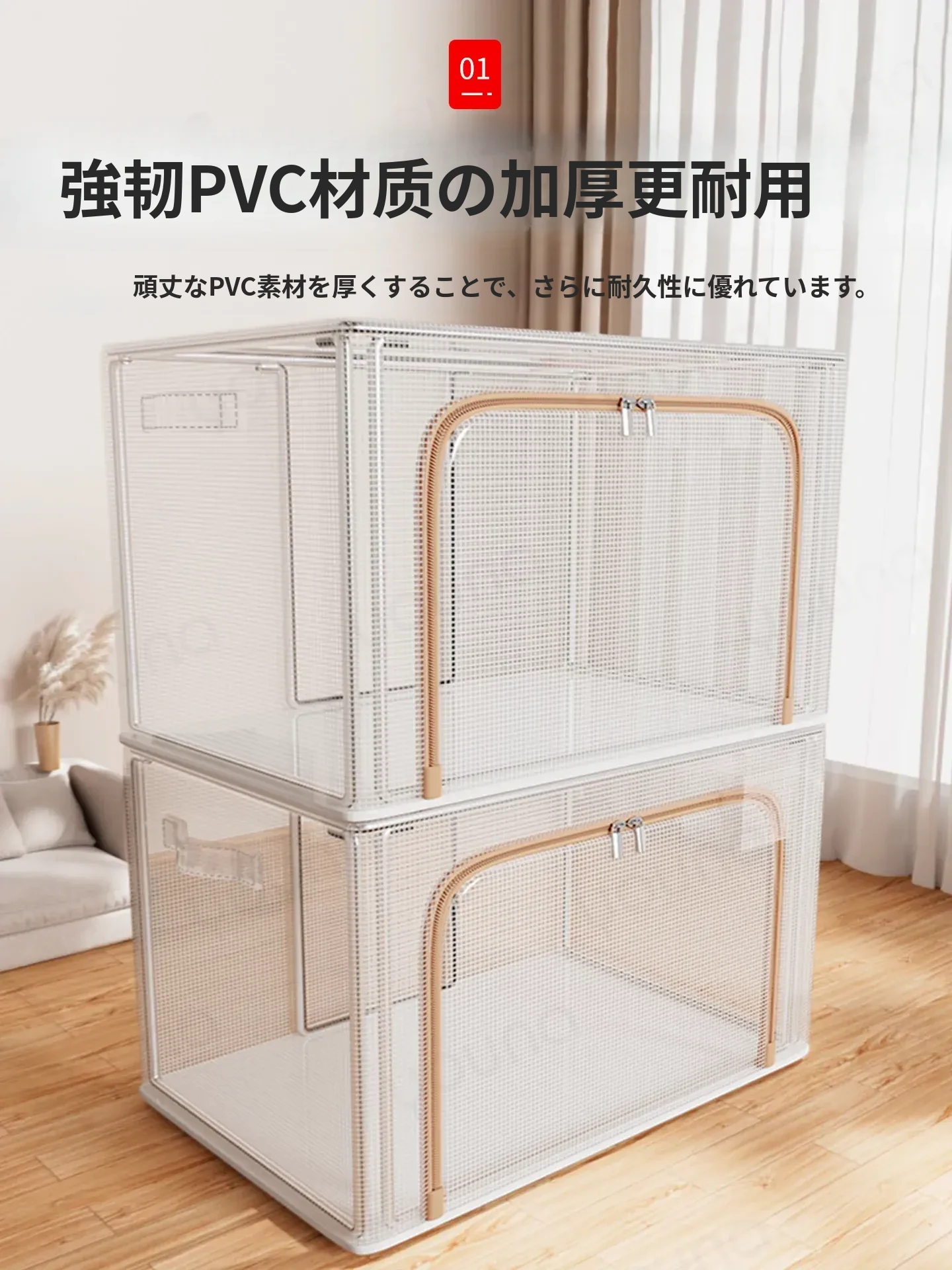 透明で大容量の折りたたみ収納ボックス - 家庭用衣類や布団の整理に最適!収納力抜群の便利な整理グッズで、スッキリとしたお部屋を実現!